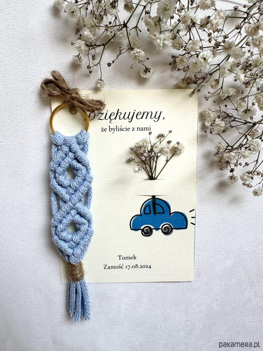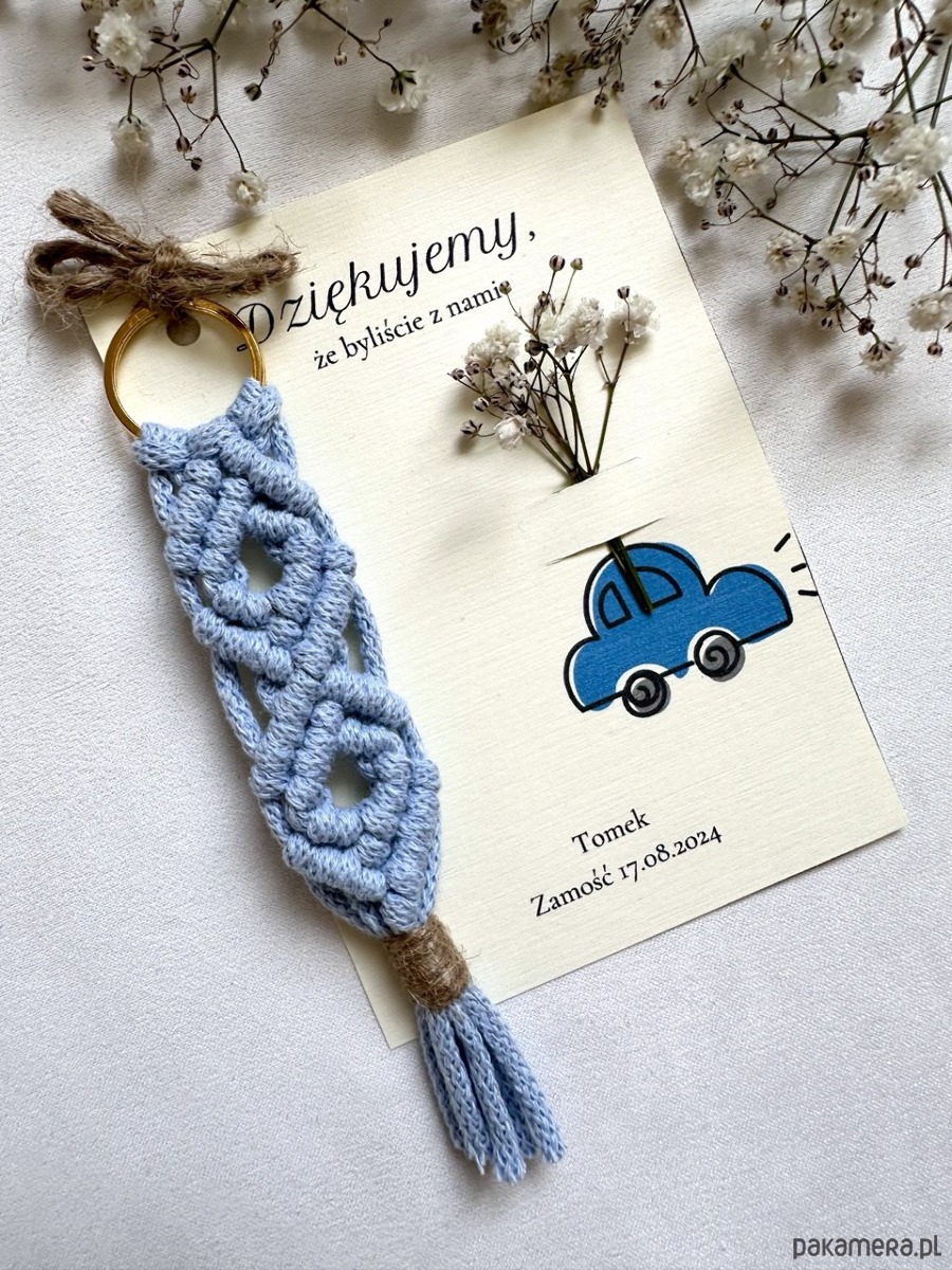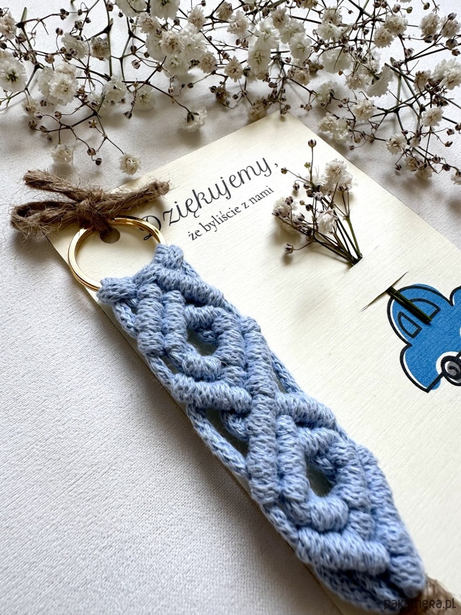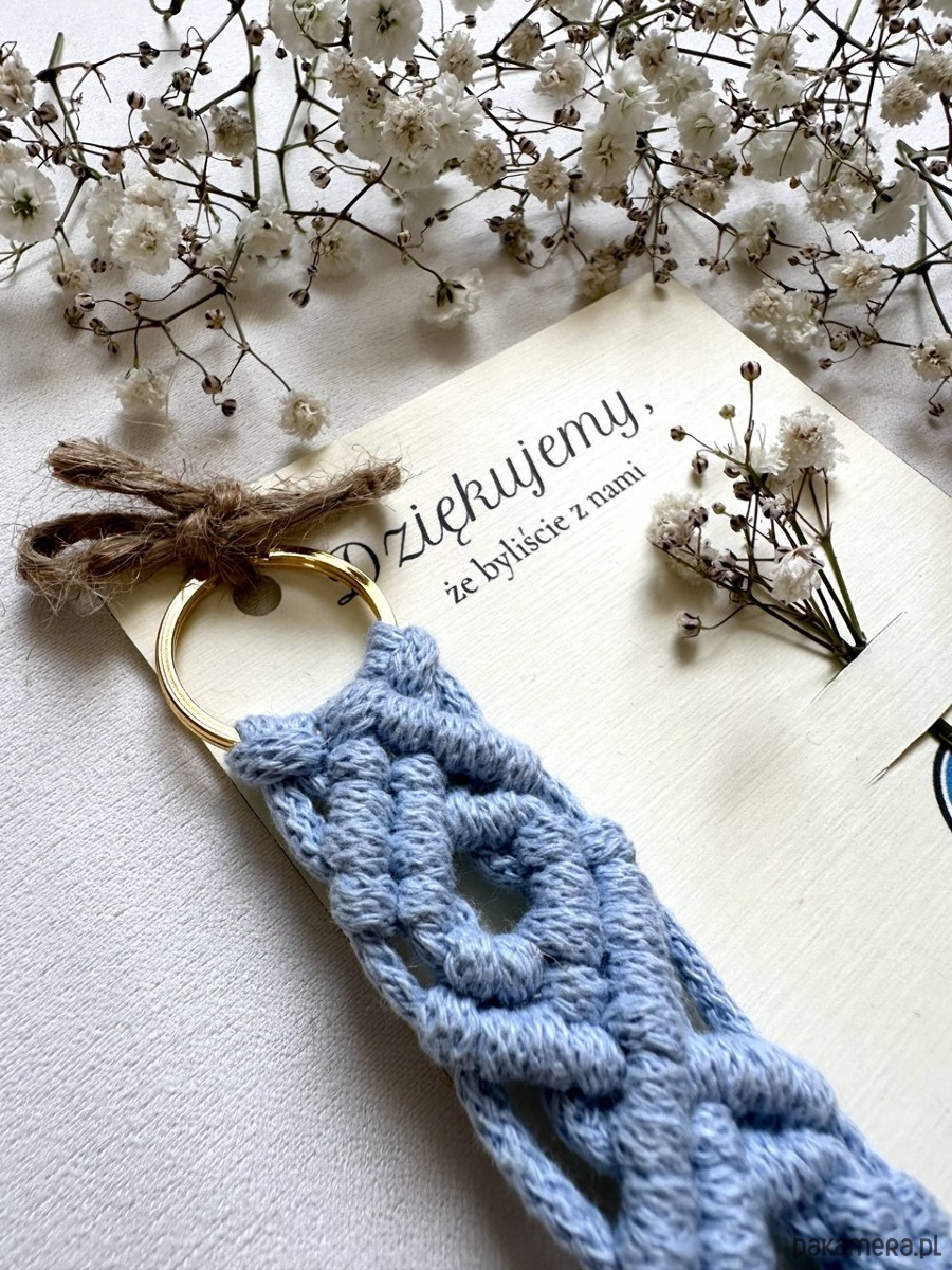 Podziękowania dla Gości na baby shower w Stylu Boho – Breloczki Makrama niebieski
