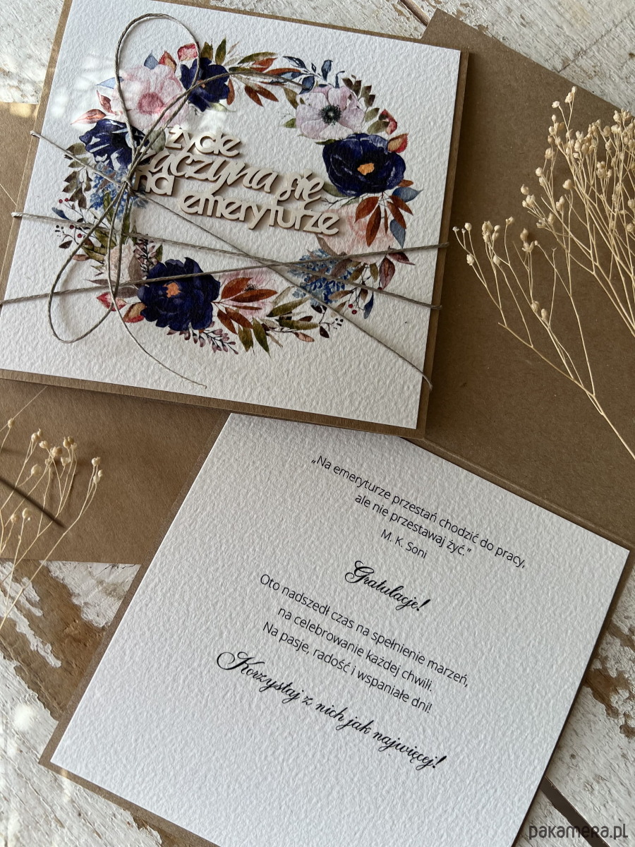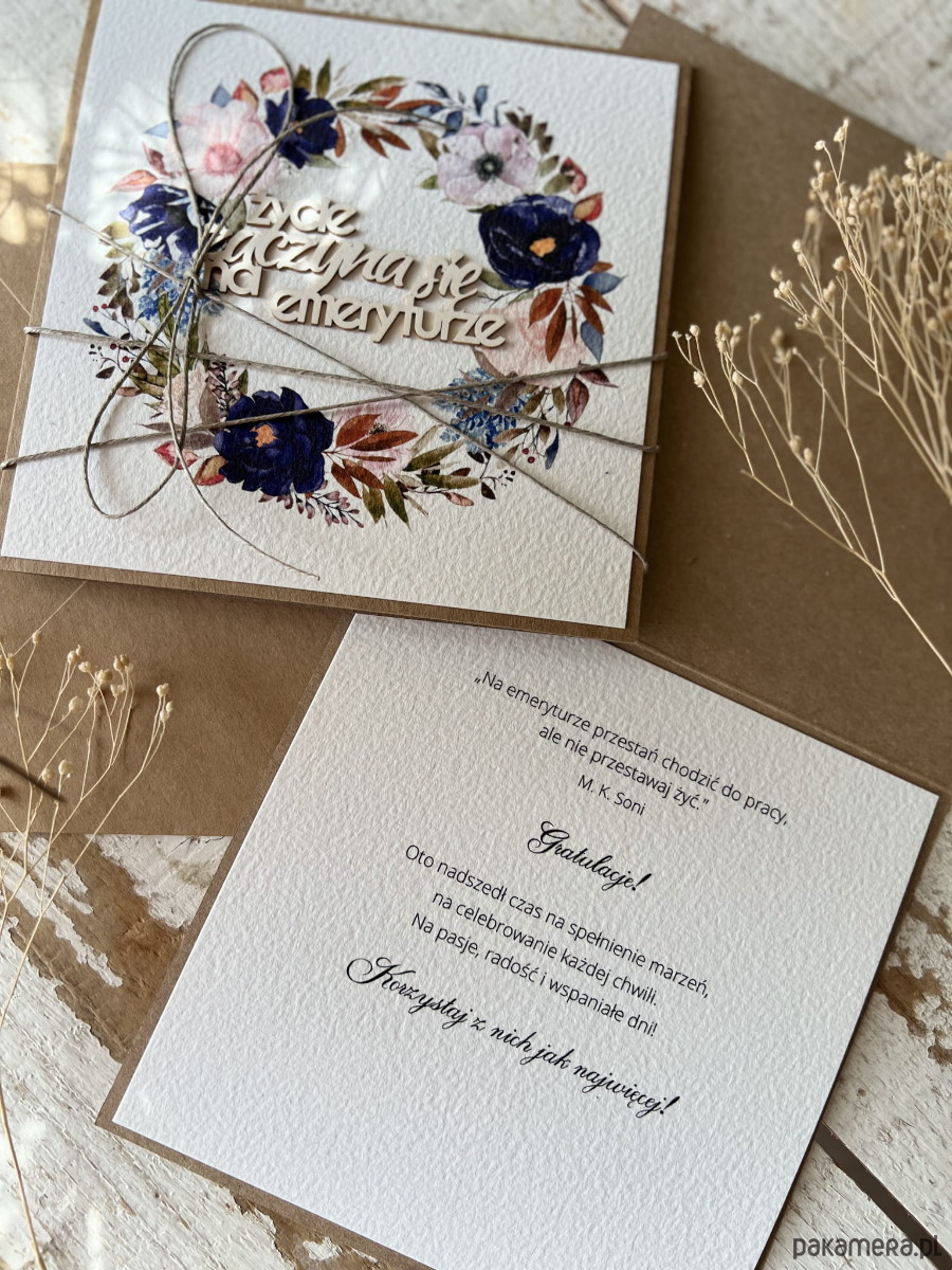 Podziękowanie za współpracę - Kartka ręcznie robiona z okazji przejścia na emeryturę - gratulacje emerytura życzenia dla emeryta, emerytki - życie zaczyna się na emeryturze