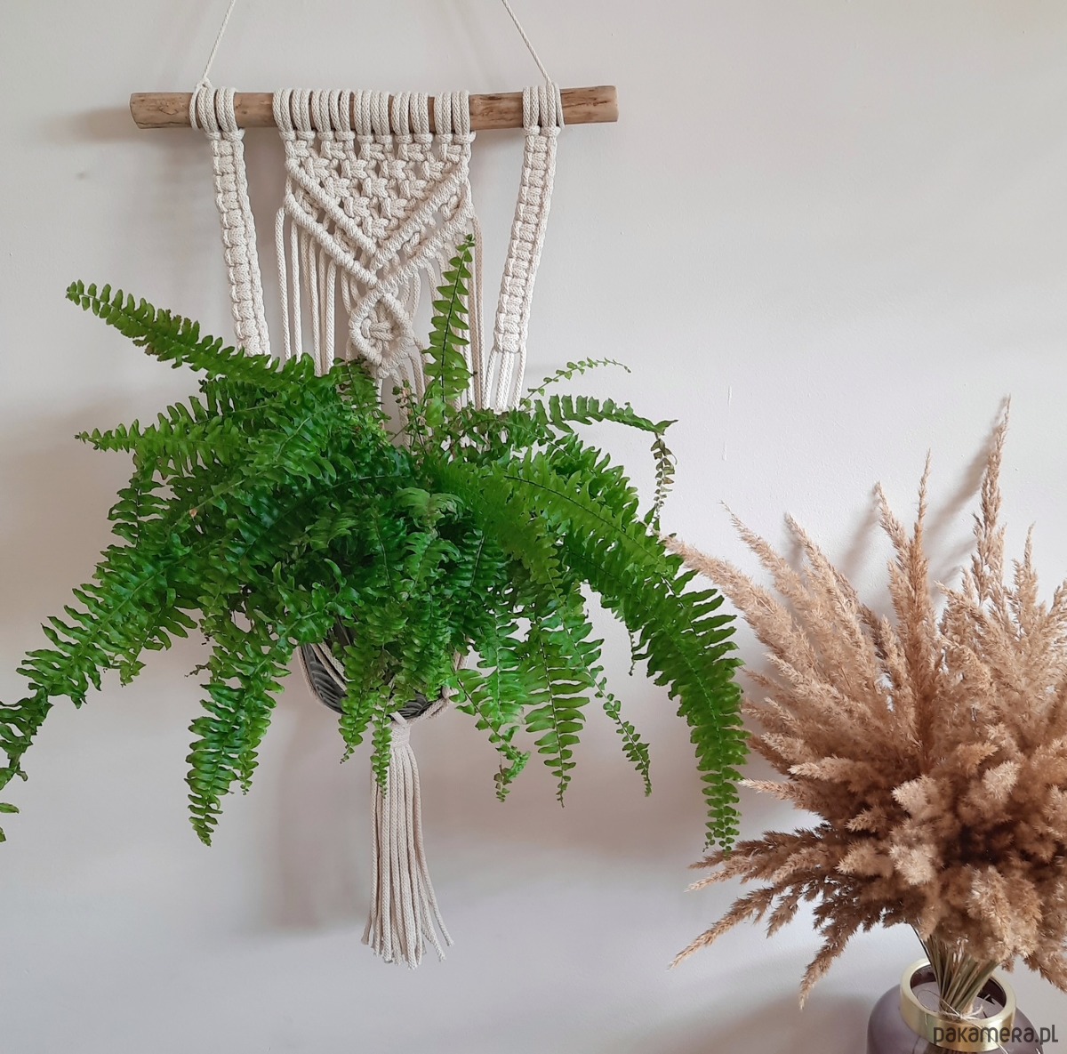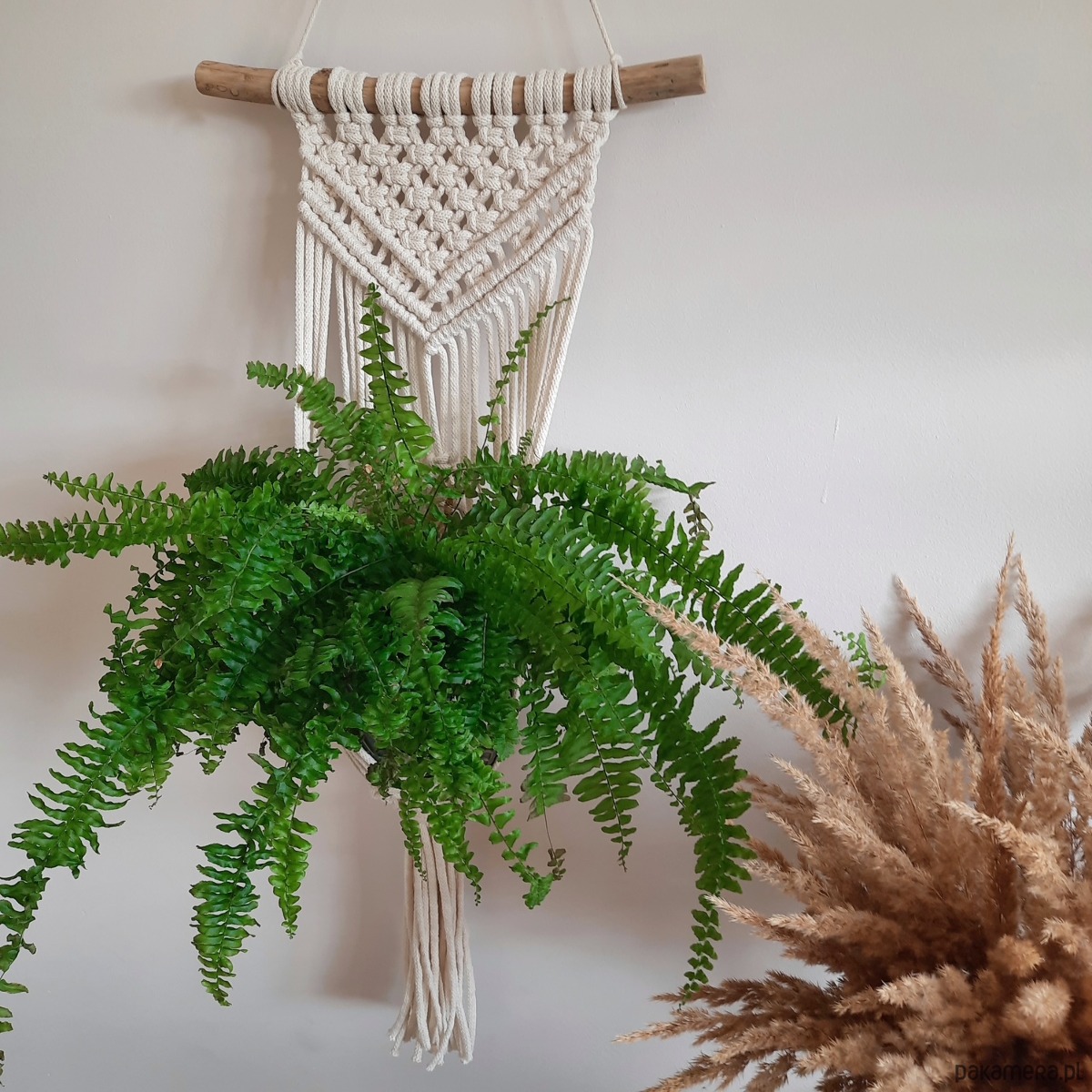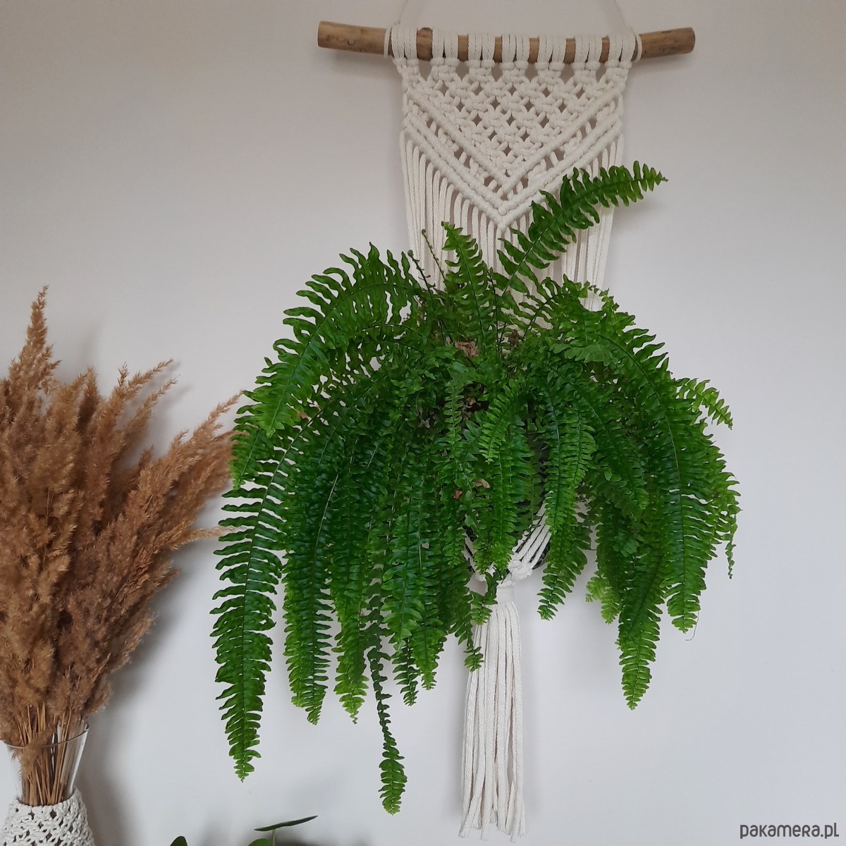 Wypleciony na naturalnej gałęzi. Kwietnik pięknie ozdobi ścianę, pasuje do każdego wnętrza. Idealne rozwiązanie, gdy chcemy uwolnić parapety.