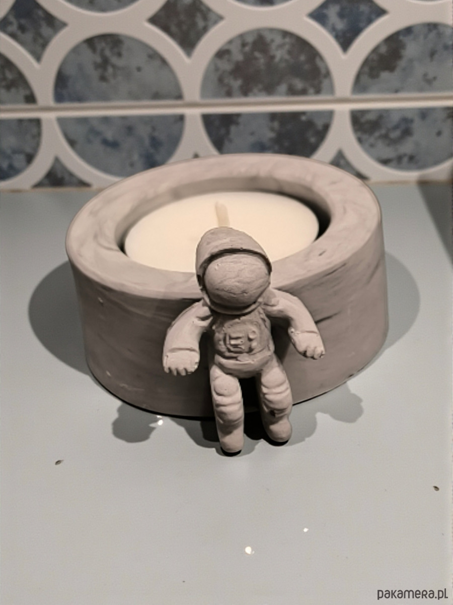 Seria COSMIC nadciąga. Ten pojemnik na tealight wygląda jak artefakt przywieziony z nieodkrytej planety, a kosmiczna kolorystyka tworzy klimat spokojnej, międzygwiezdnej przestrzeni. Astronauta na brzegu to pierwszy sygnał, że cała kolekcja będzie opowiadać własne kosmiczne historie.
