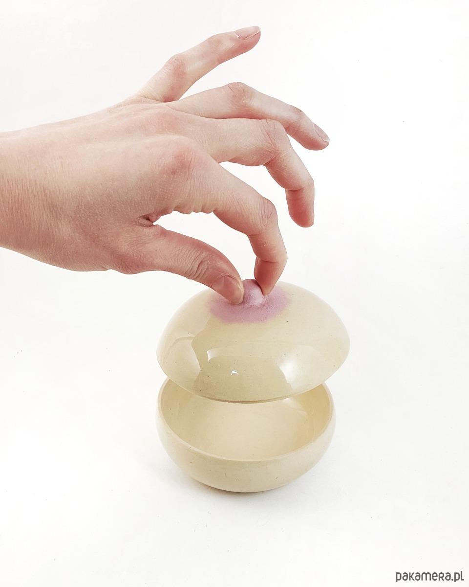 Ceramiczna szkatułka na biżuterię / drobiazgi w kształcie piersi.