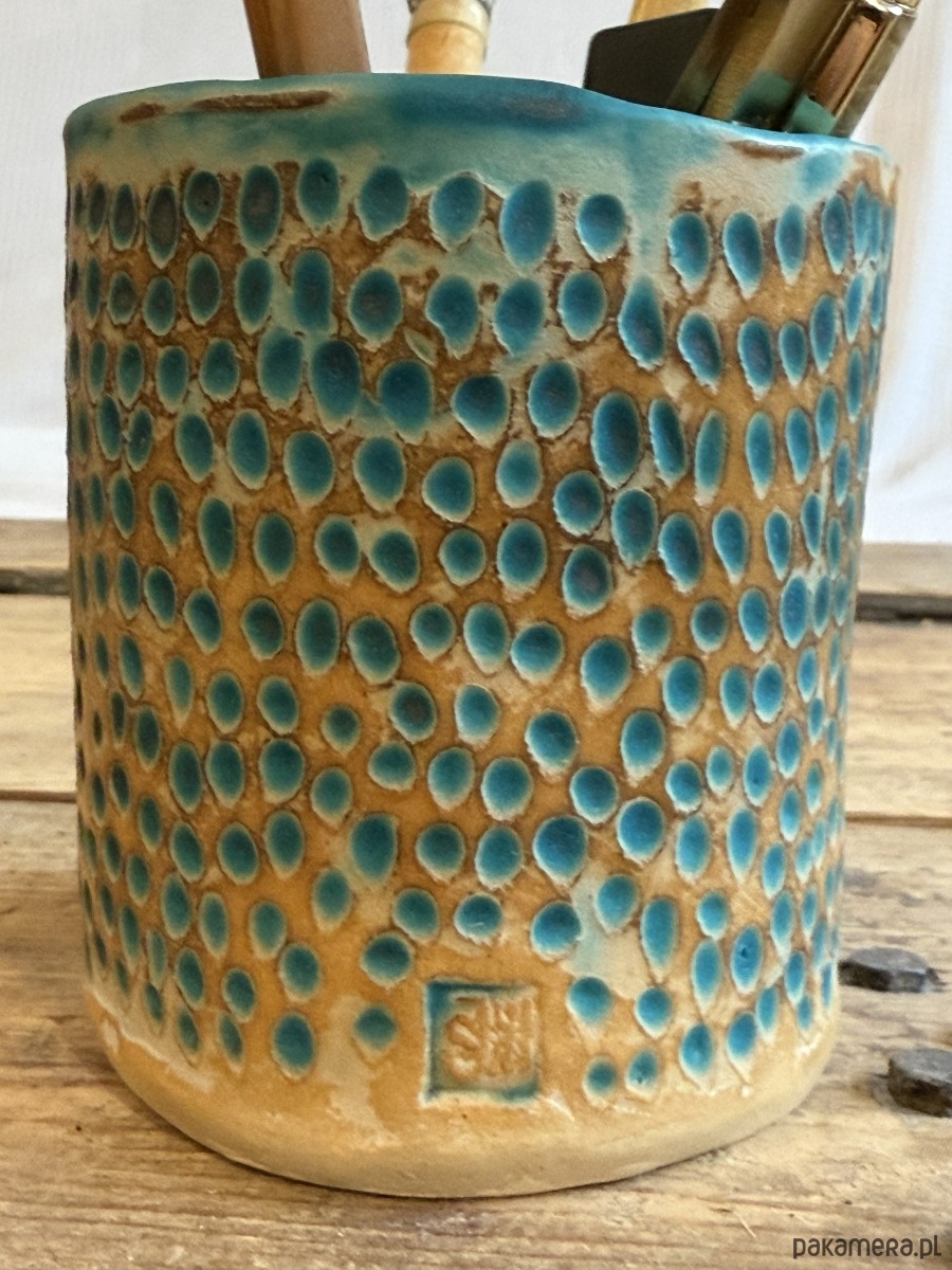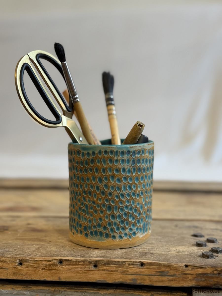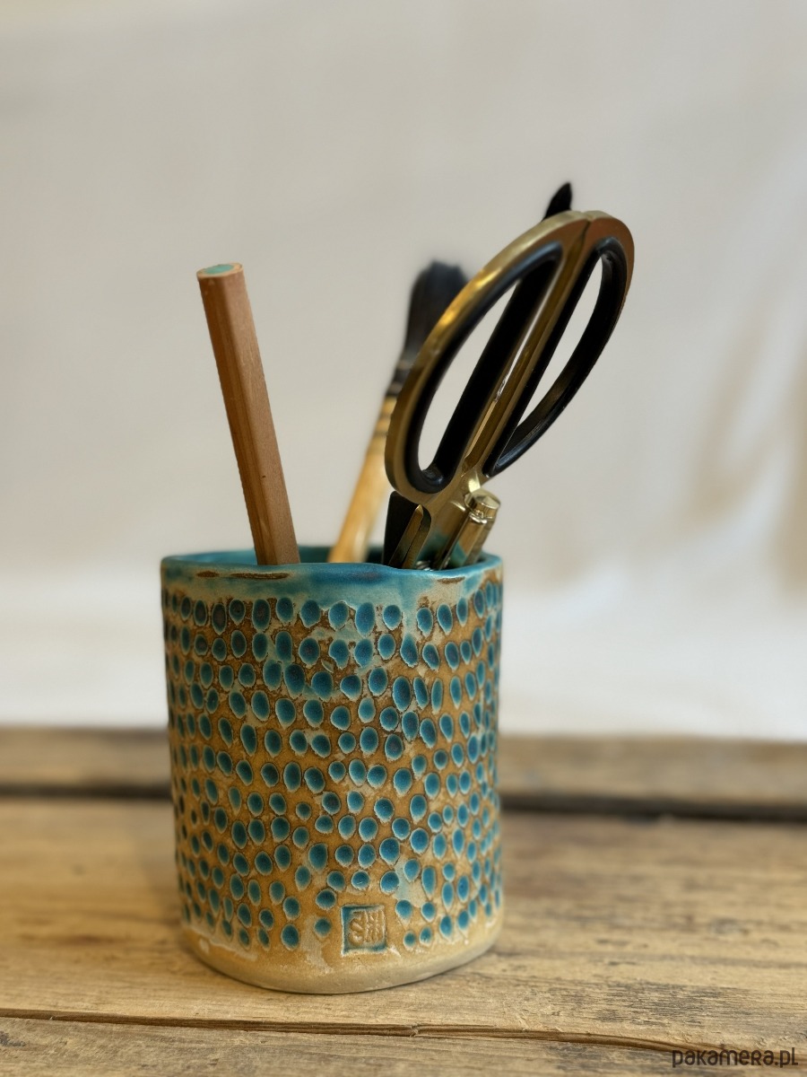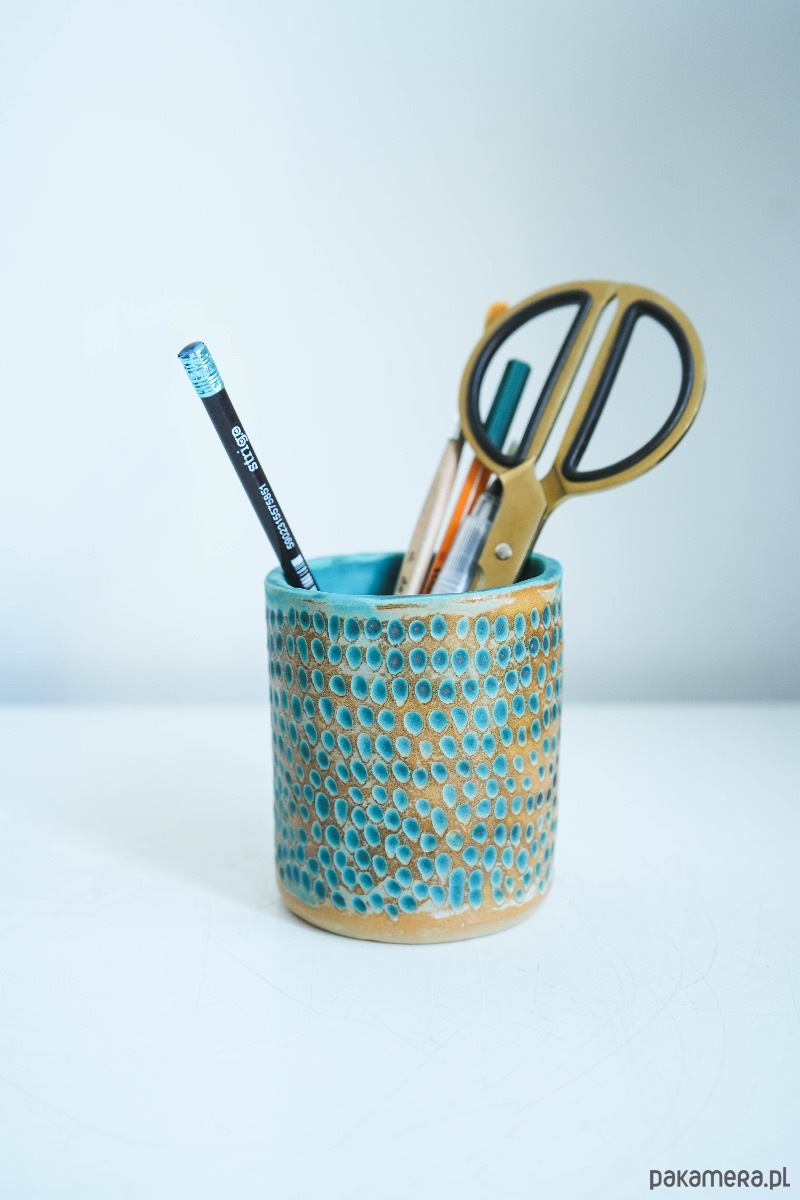 Ceramiczny pojemnik na pędzle, pojemnik na długopisy, można też wykorzystać w łazience, na kwiaty, ponieważ nie przepuszcza wody.