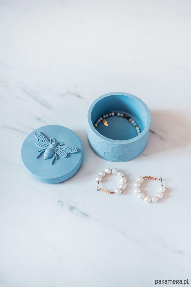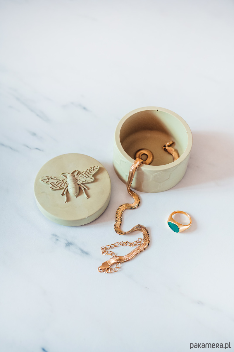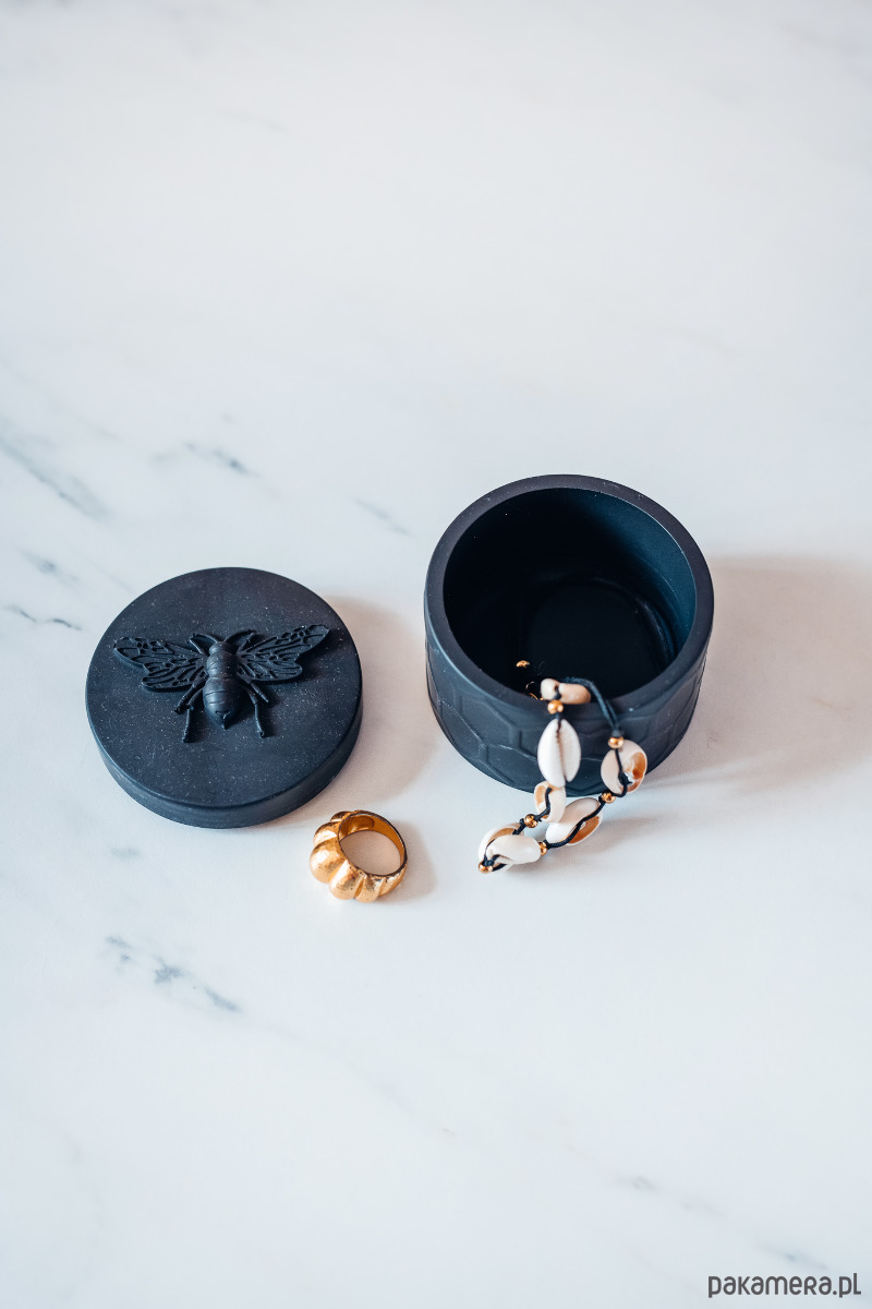 Pojemnik zamykany idealnie sprawdzi się do przechowywania biżuterii, wosków do kominka, płatków kosmetycznych etc.
