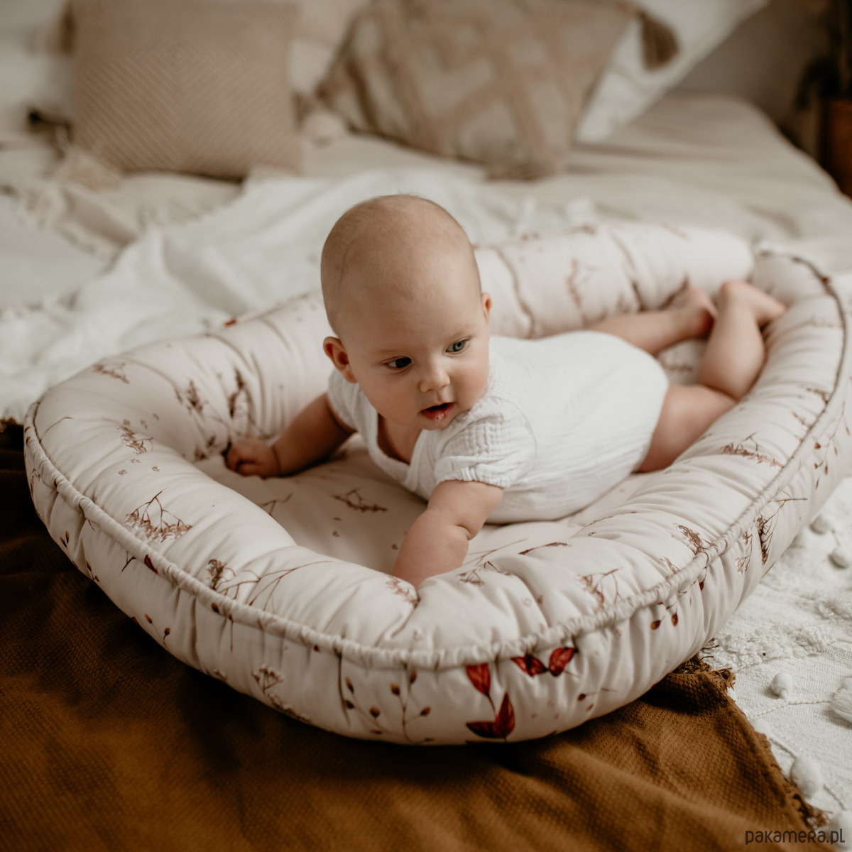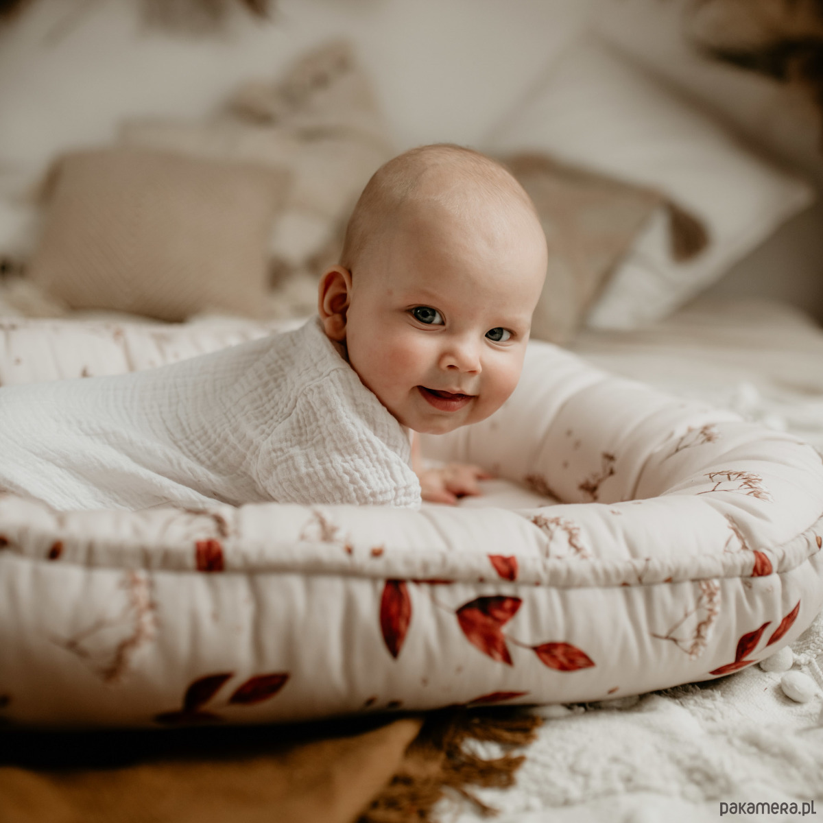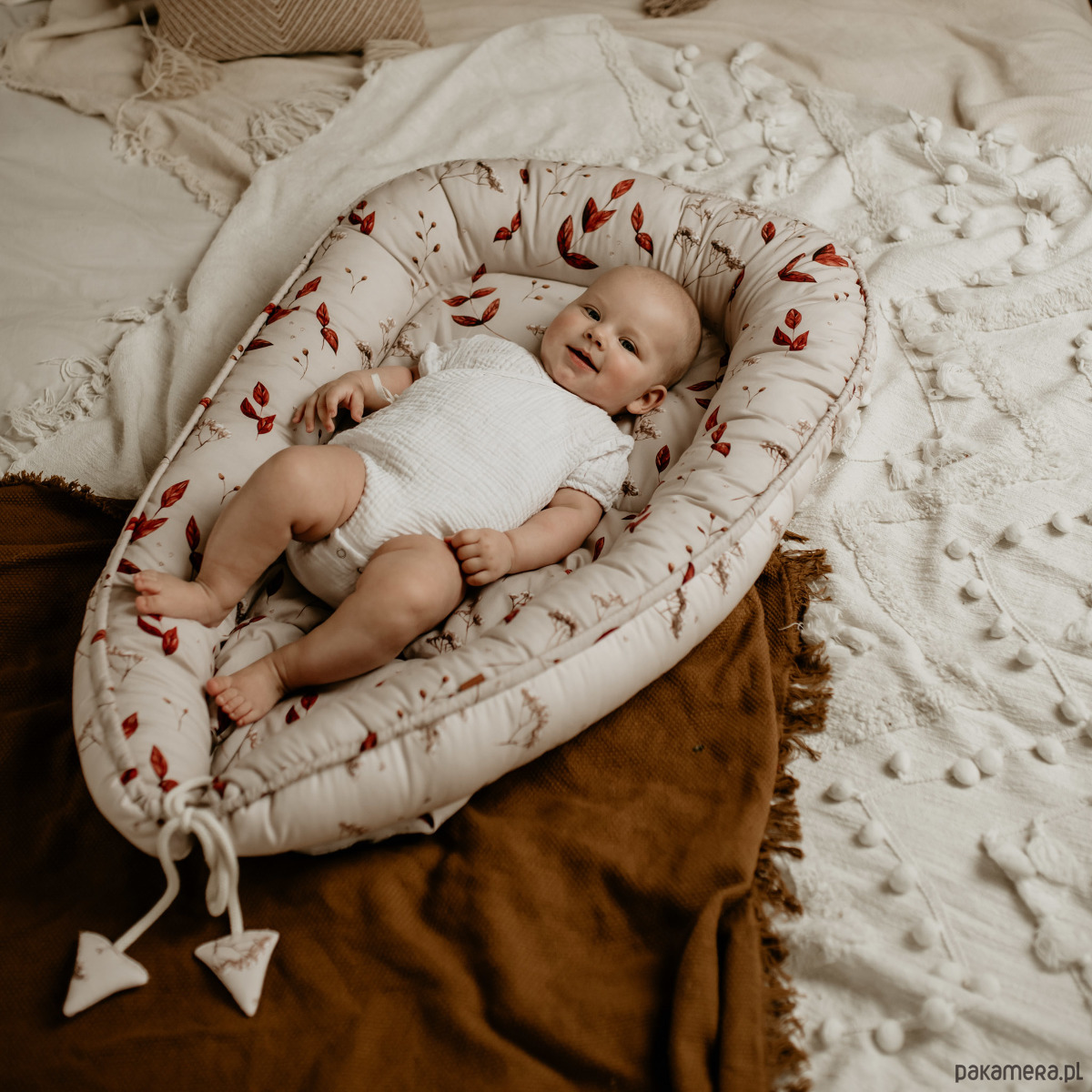 Nasz kokon świetnie sprawdzi się do leżakowania, w podróży, czy w łóżku rodziców. Dziecko, które przyzwyczai się do przestrzeni wyznaczonej przez kokon, czuje się bezpieczniej w każdym nowym miejscu.