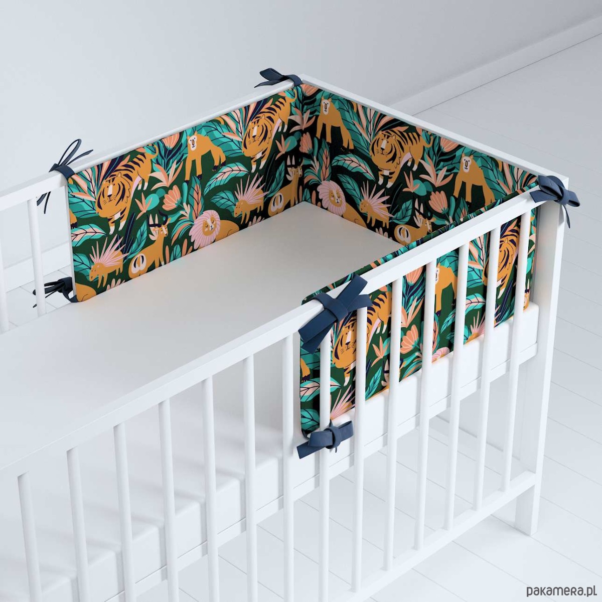 Ochroni Twojego maluszka przed uderzeniem o twarde szczebelki i zapewni mu bezpieczny sen. Ochraniacz jest dwustronny, podzielony na trzy segmenty i mocowany na troczki, z ktorych stworzysz ozdobne kokardy. Dzięki szerokiemu wachlarzowi tkanin dostępnych w ofercie możesz dobrać kolor i wzór, który idealnie wpisze się w stylistykę pokoju Twojej pociechy.