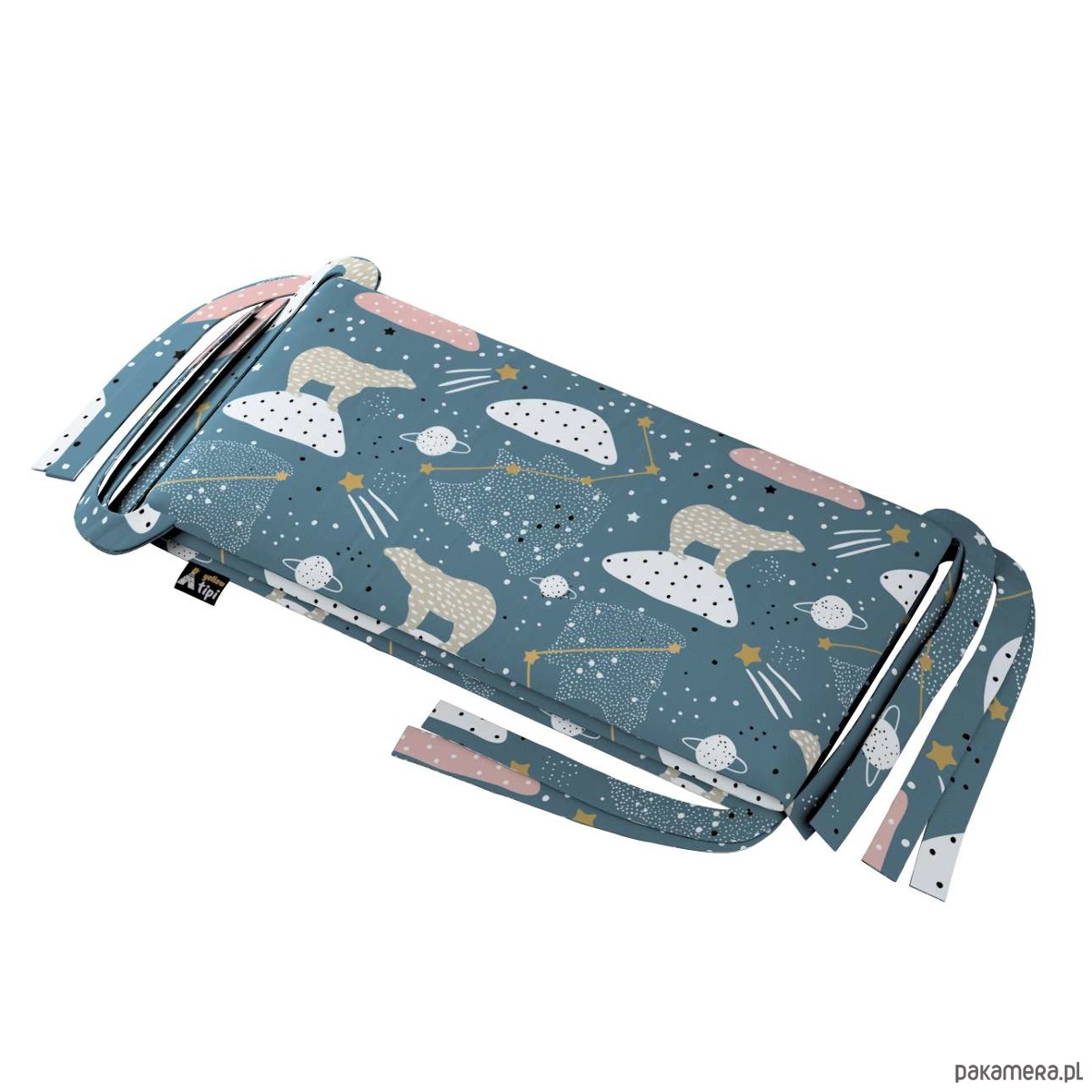 Ochroni Twojego maluszka przed uderzeniem o twarde szczebelki i zapewni mu bezpieczny sen. Ochraniacz jest dwustronny, podzielony na trzy segmenty i mocowany na troczki, z ktorych stworzysz ozdobne kokardy. Dzięki szerokiemu wachlarzowi tkanin dostępnych w ofercie możesz dobrać kolor i wzór, który idealnie wpisze się w stylistykę pokoju Twojej pociechy.