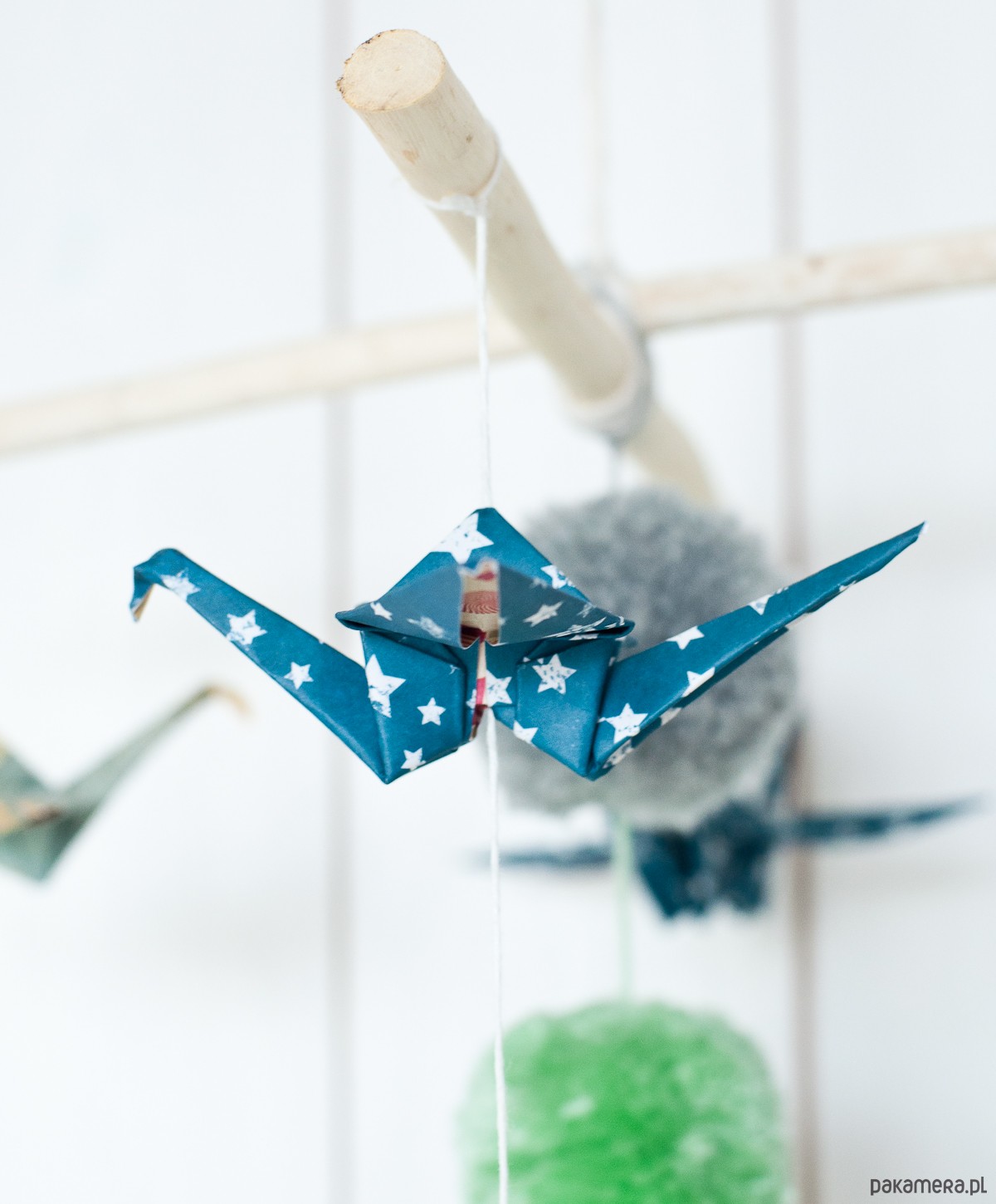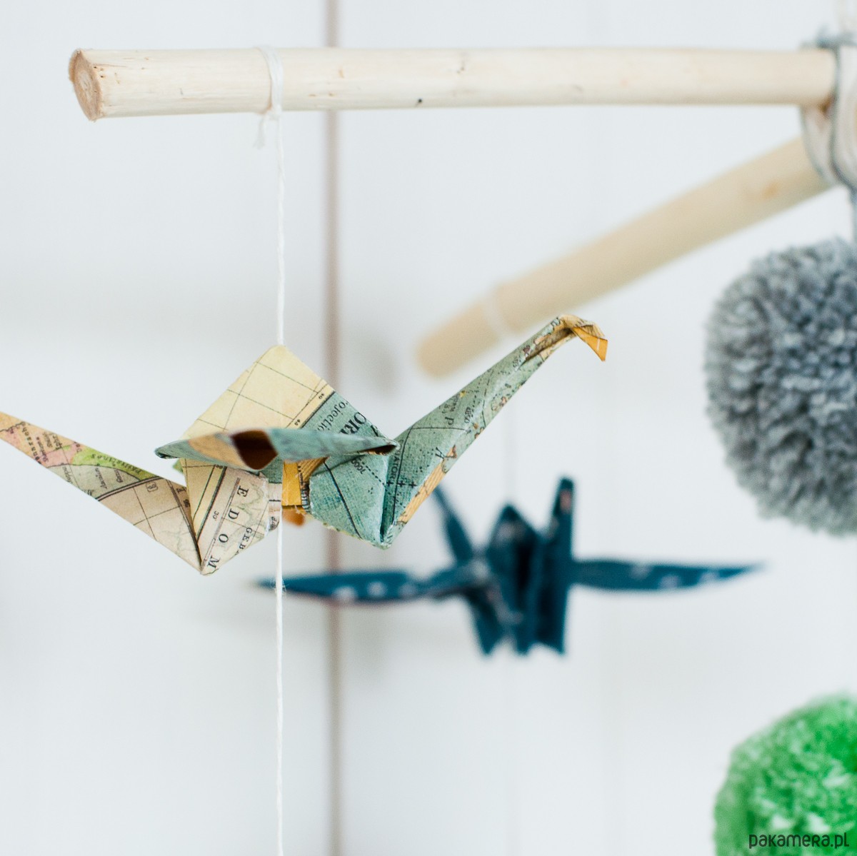 Mobil Moi Mili jest starannie stworzony techniką origami. Do jego wykonania używamy wysokiej jakości, sztywnego papieru bezkwasowego i patyczków znalezionych podczas spacerów. Ptaszki są dostępne w wielu pięknych wzorach. Karuzela sprawdzi się nad łóżeczkiem malucha, ale w pokoju starszego dziecka, a nawet rodzica też będzie się dobrze prezentował. Delikatny podmuch wiatru wprawia mobil w ruch i tym samym wprowadza niepowtarzalny klimat w pomieszczeniu. dł. 65 cm.