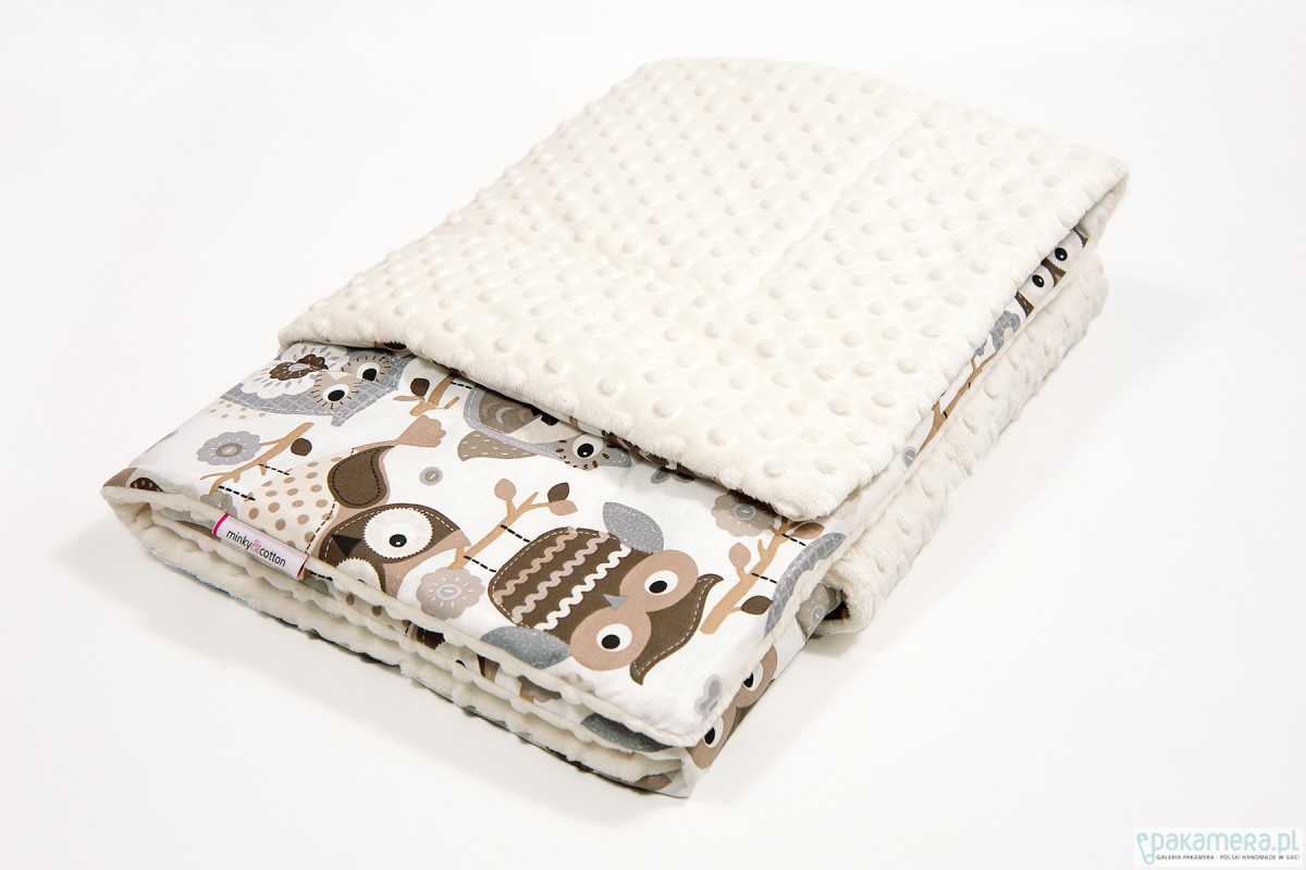 Przytulaśny kocyk dla niemowląt i starszych dzieci. Cudownie miękki, wykonany z najwyższej jakości wzorzystej bawełny oraz niesamowicie mięciutkiej i delikatnej tkaniny Minky. Wypełniony antyalergiczną puszystą włókniną. Fantastyczny pomysł na prezent dla młodej mamy i jej maluszka z okazji narodzin, chrztu, urodzin. Wpisz dedykację za załączonej przywieszce. Może służyć jako kocyk, kołderka, mata, do łóżeczka, wózka czy fotelika. Kocyk w rozmiarze ok 75 cm x 95 cm. W takiej samie gamie kolorystycznej znajdziesz również pluszaka do kompletu.