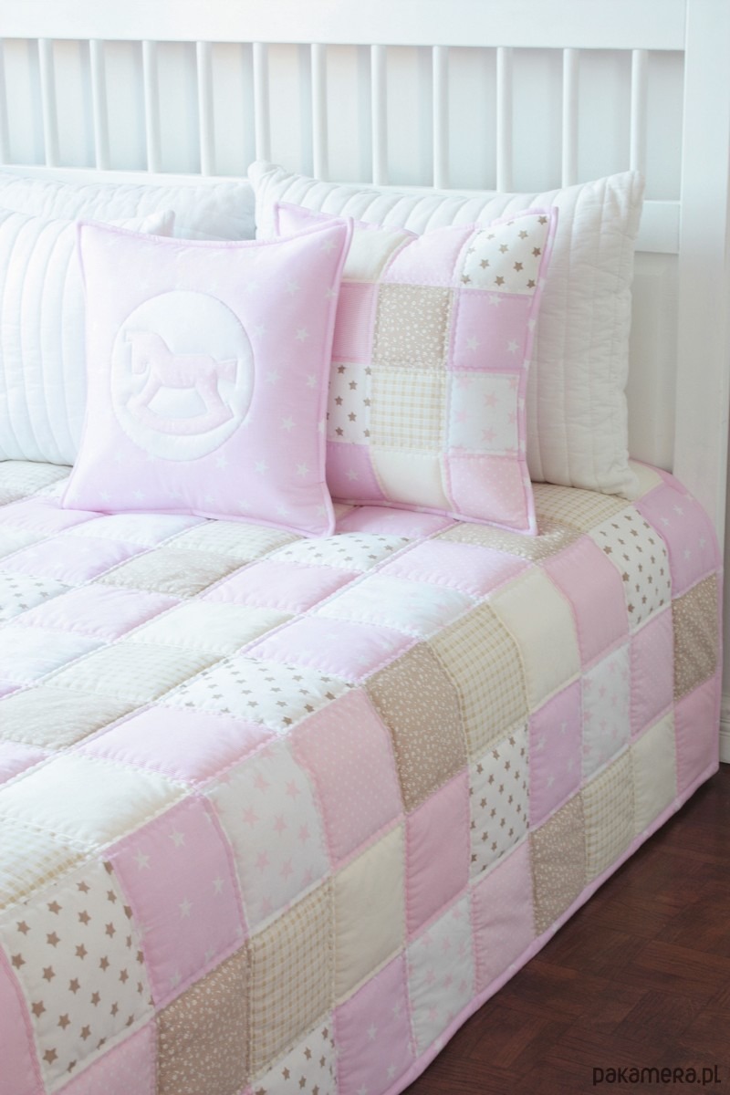 Technika wykonania: patchwork z kwadratów 15 x 15 cm, pikowanie przez 3 warstwy