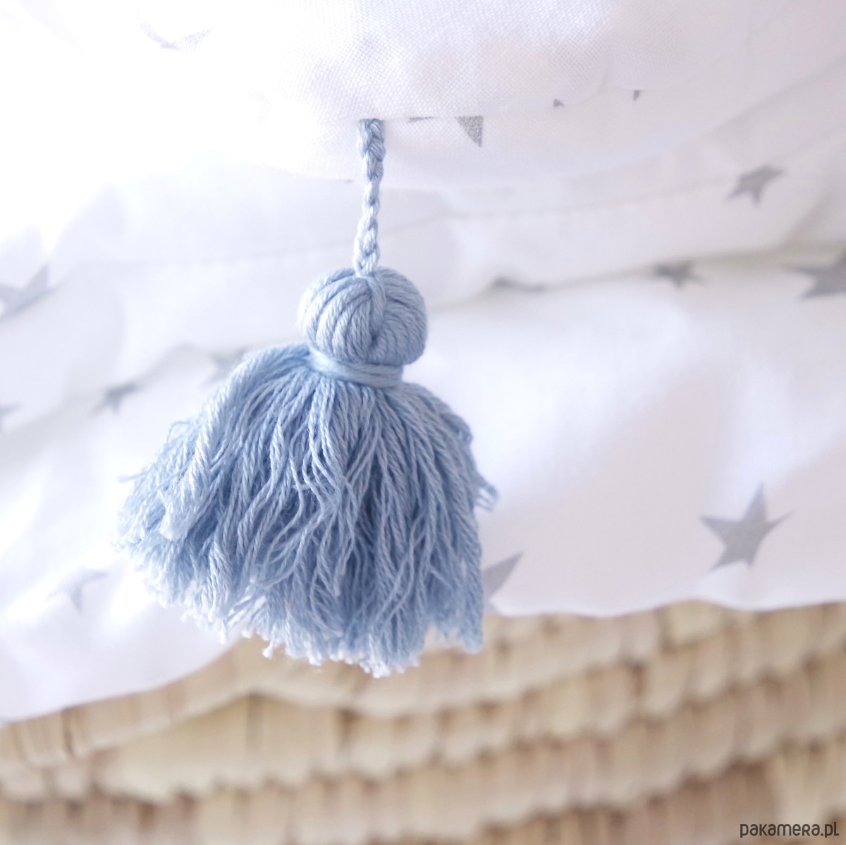 Pościel jest wykonana ze 100% naturalnej bawełny posiadającej Certyfikat Oeko Tex 100. Kołderka jest bardzo miękka i przewiewna, dzięki czemu zapewnia wysoki komfort snu. Poduszka jest odpowiednio miękka i płaska, przez co może być używana już przez noworodki. Dodatkowo pościel została ozdobiona 3 zabawnymi frędzelkami. Jeden frędzelek ozdabia róg poduszeczki, dwa pozostałe przekątne rogi kołderki. Frędzelki nie tylko świetnie wyglądają, ale przede wszystkim rozwijają zdolności poznawcze i doskonale pomogą rozwijać umiejętność chwytania u Twojego maluszka.