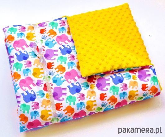 Jedna strona kocyka uszyta z wysokogatunkowej 100% bawełny, druga strona to mięciutkie minky. Środek kocyka wypełniony został antyalergiczną włókniną silikonową (możliwość zamówienia kocyka bez wypełnienia). Rozmiar: 75x100 cm. Doskonały do wózka i łóżeczka.