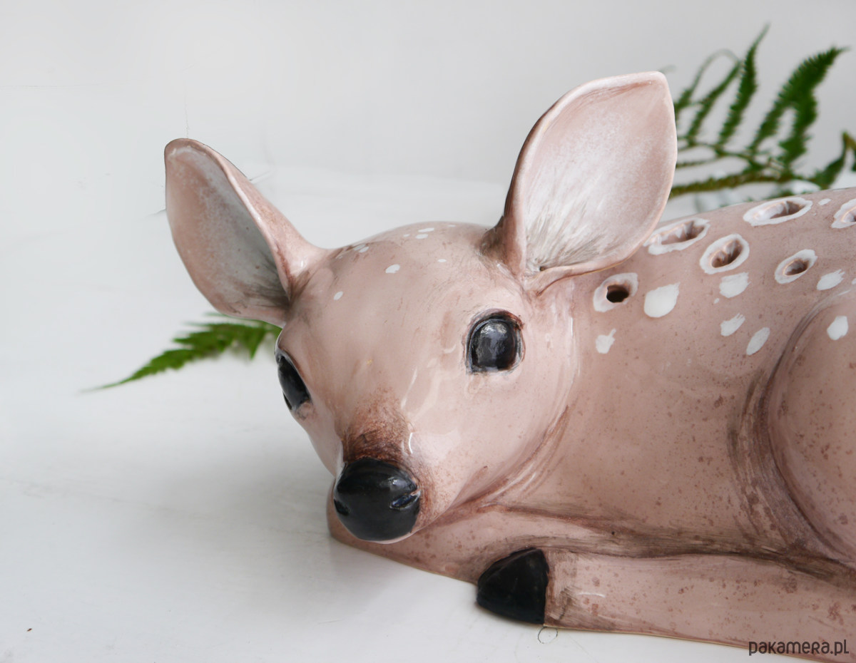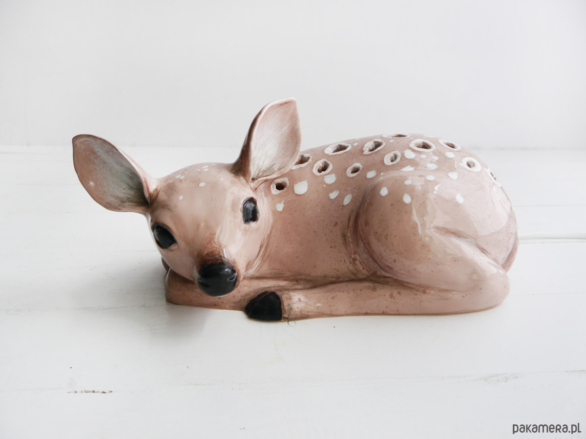 Przedstawiam zwiniętego jelonka, nocną lampę. Jelonek ma zamontowaną wewnątrz żarówkę LED o ciepłej barwie. Poprzez jego łatki a zarazem otwory żarzy się światło. Dzięki temu możesz mieć w domu ciekawą rzeźbę a zarazem przyjemną nocną lampę. Jelonek przenosi nas w nieco baśniowy i ilustracyjny świat. Dlatego będzie oryginalną ozdobą pokoju dziecięcego, która wprowadzi dziecko w niezwykły świat.
