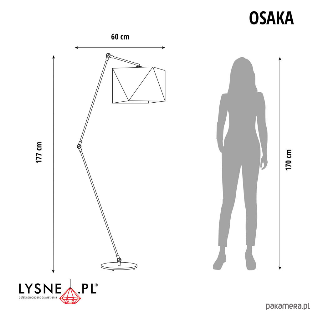 Wymiary lampy: wysokość - 177 cm, szerokość - 60 cm (zarówno wysokość jak i szerokość lampy można regulować)