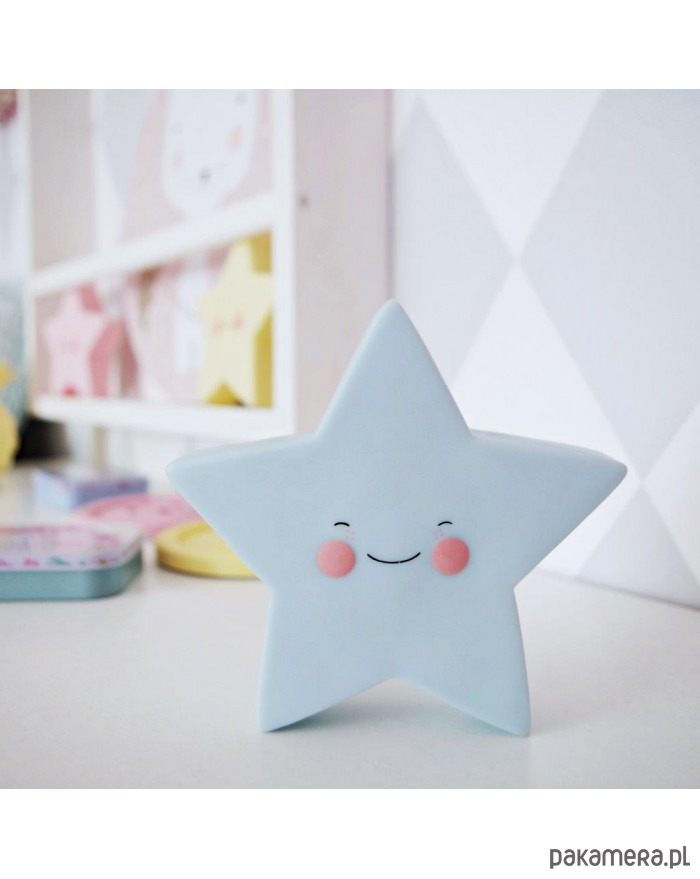 Urocza lampka - uśmiechnięta gwiazdka. Zasilana na baterie. To idealne oświetlenie nocne dziecięcego pokoju.