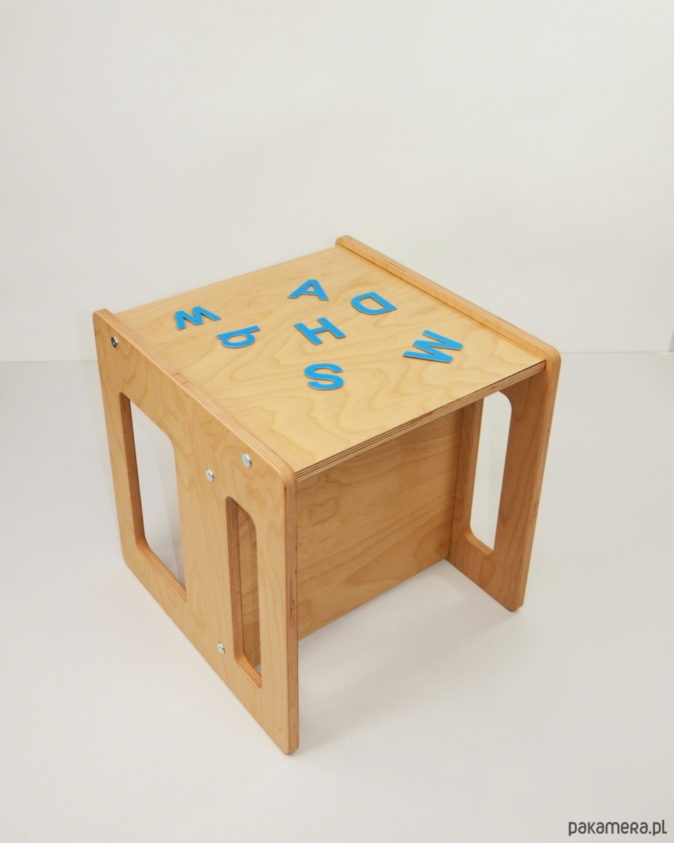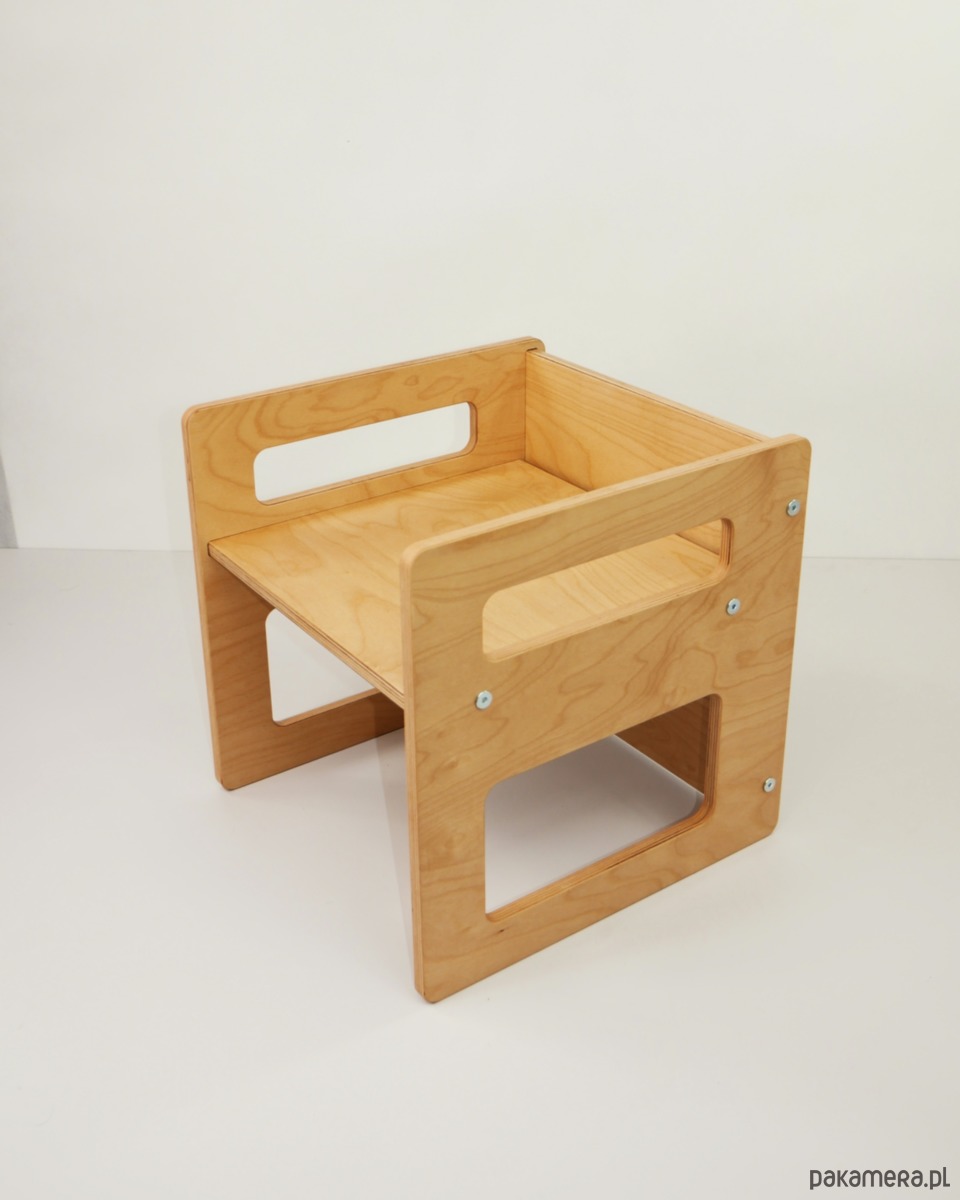 Ekologiczne, wyprodukowane w Polsce krzesełko dla dzieci zaskoczy swoją funkcjonalnością. Przeznaczone jest zarówno dla maluszków, jak i przedszkolaków, bo posiada dwie wysokości siedziska. Krzesełko może służyć również jako stolik, dzięki swojej prostej, ale wyjątkowo praktycznej konstrukcji. Jest bardzo łatwe w montażu i zabezpieczone olejem bezpiecznym dla dzieci. Posiada również przyjazne dzieciom zaokrąglone krawędzie.