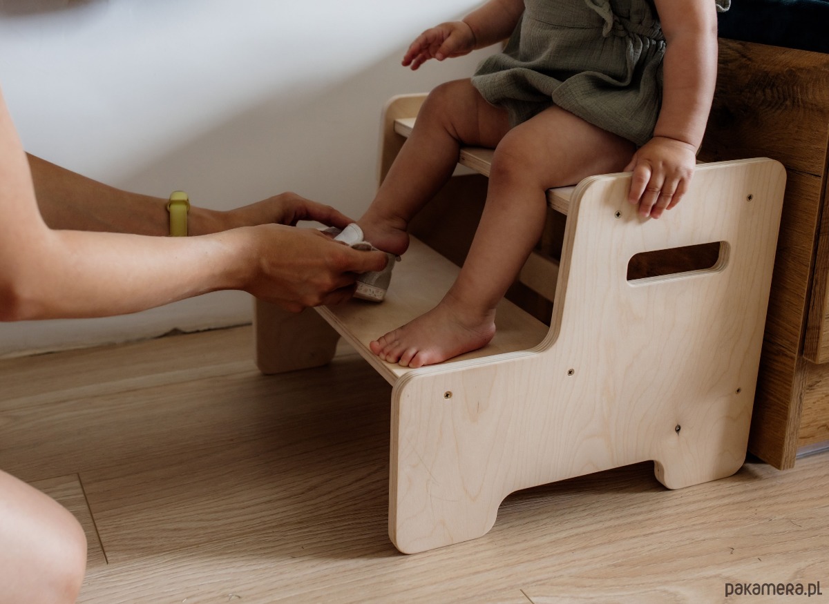 Drewniany ekologiczny podest dla dziecka doskonale sprawdzi się w kuchni, łazience i wszędzie tam, gdzie maluch mógłby, ale nie potrafi dosięgnąć. Został wyprodukowany w Polsce, posiada zaokrąglone krawędzie, więc jest całkowicie bezpieczny dla dzieci.
