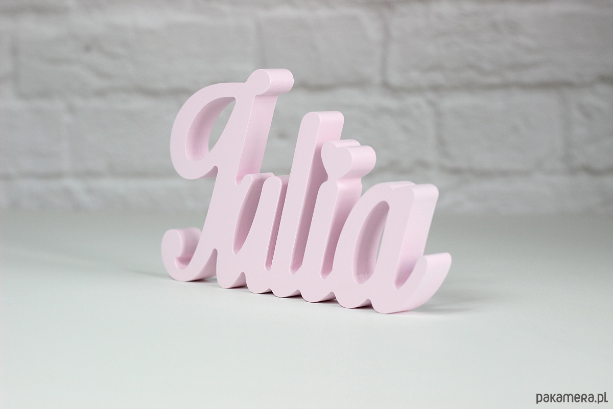 Samodzielnie stojące Imię wycięte z mdf. Pomalowane ekologiczną farbą wodną w dowolnym kolorze.