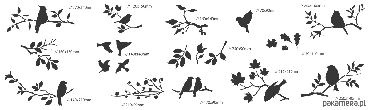 SZABLONY MALARSKIE WIELOKROTNE 14szt. // PTAKI