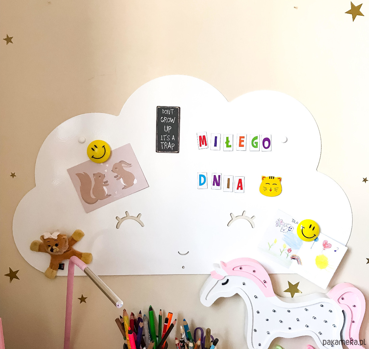 Tablica magnetyczna to śliczna a zarazem praktyczna dekoracja pokoju Twojego dziecka.