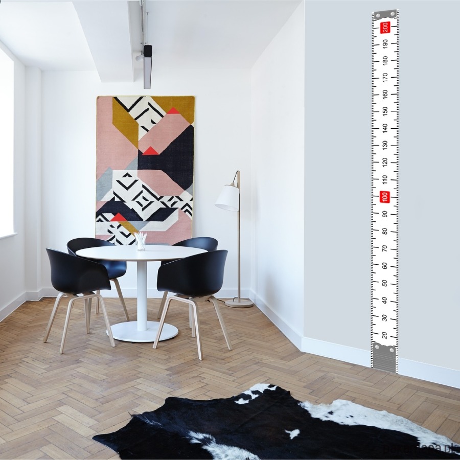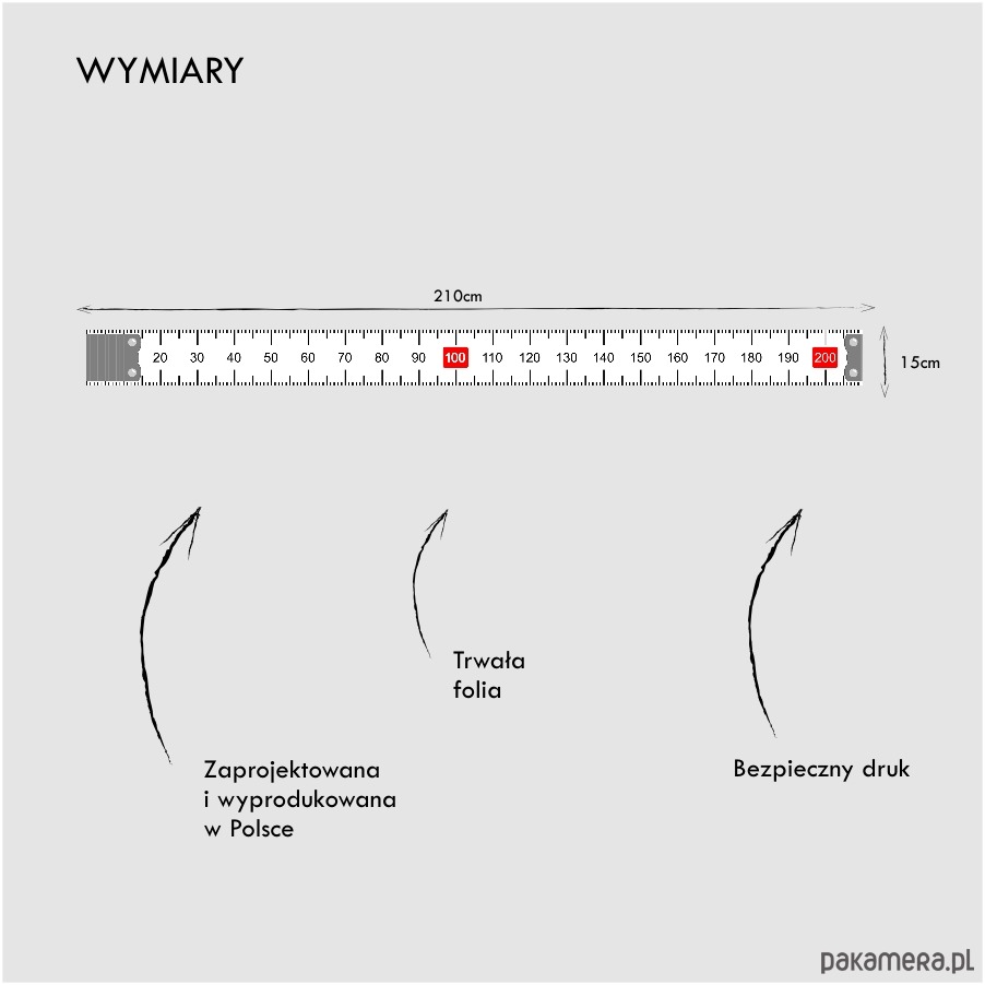 Miarka wykonana jest z trwałej folii samoprzylepnej. Drukowana w przyjaznej dzieciom, nietoksycznej technologii lateksowej. Nie uszkadza tynku. Wielką Miarkę zaprojektowaliśmy i produkujemy Polsce.
