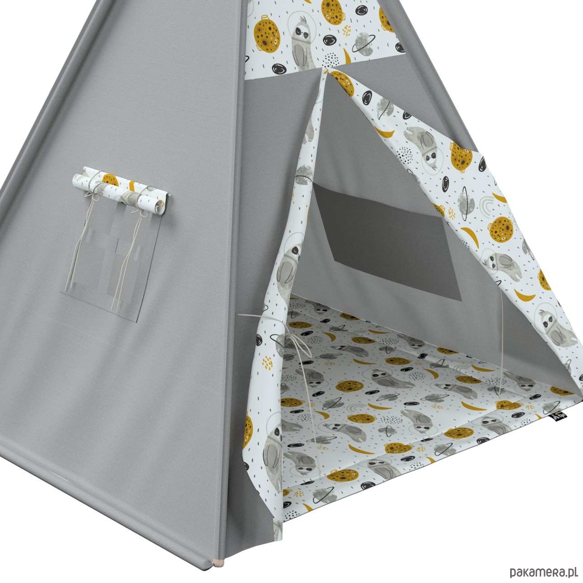 - namiot wykonany z przyjemnej w dotyku dobrze układającej się tkaniny (do wyboru również odporna na plamy