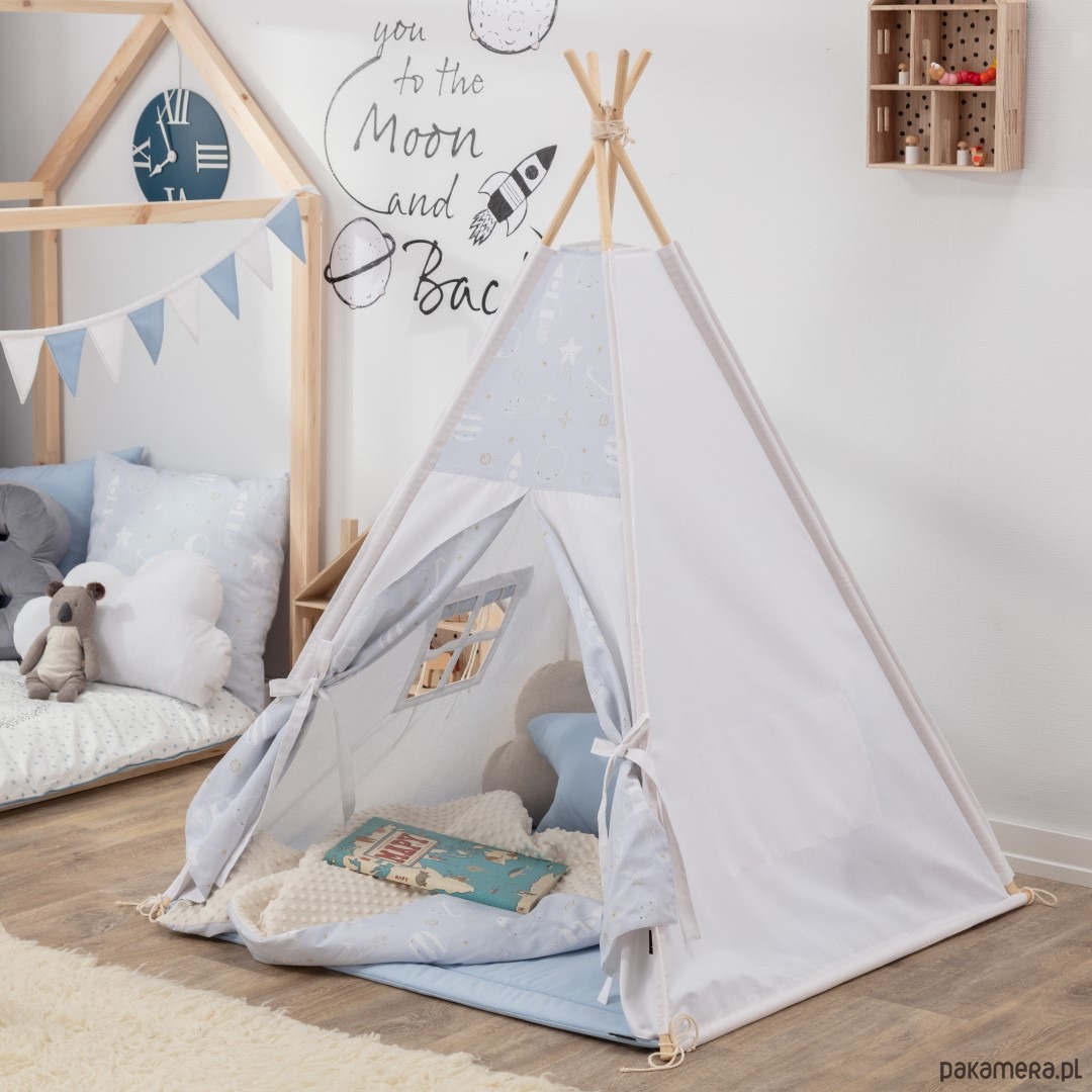 Namiot tipi najlepiej prezentuje się wyposażony w miękką matę i kolorowe poduchy, które znajdziesz w naszej ofercie.