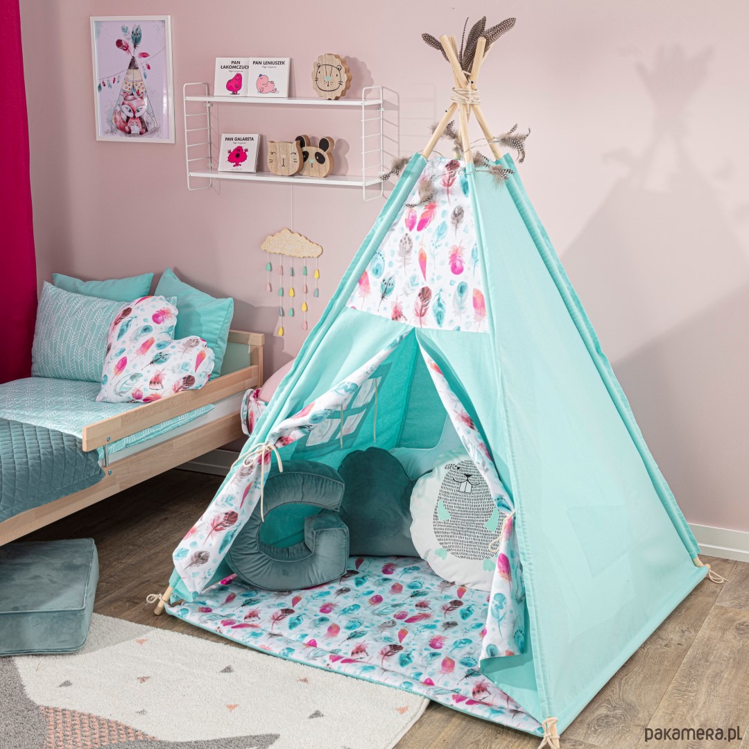 Namiot tipi najlepiej prezentuje się wyposażony w miękką matę i kolorowe poduchy, które znajdziesz w naszej ofercie.
