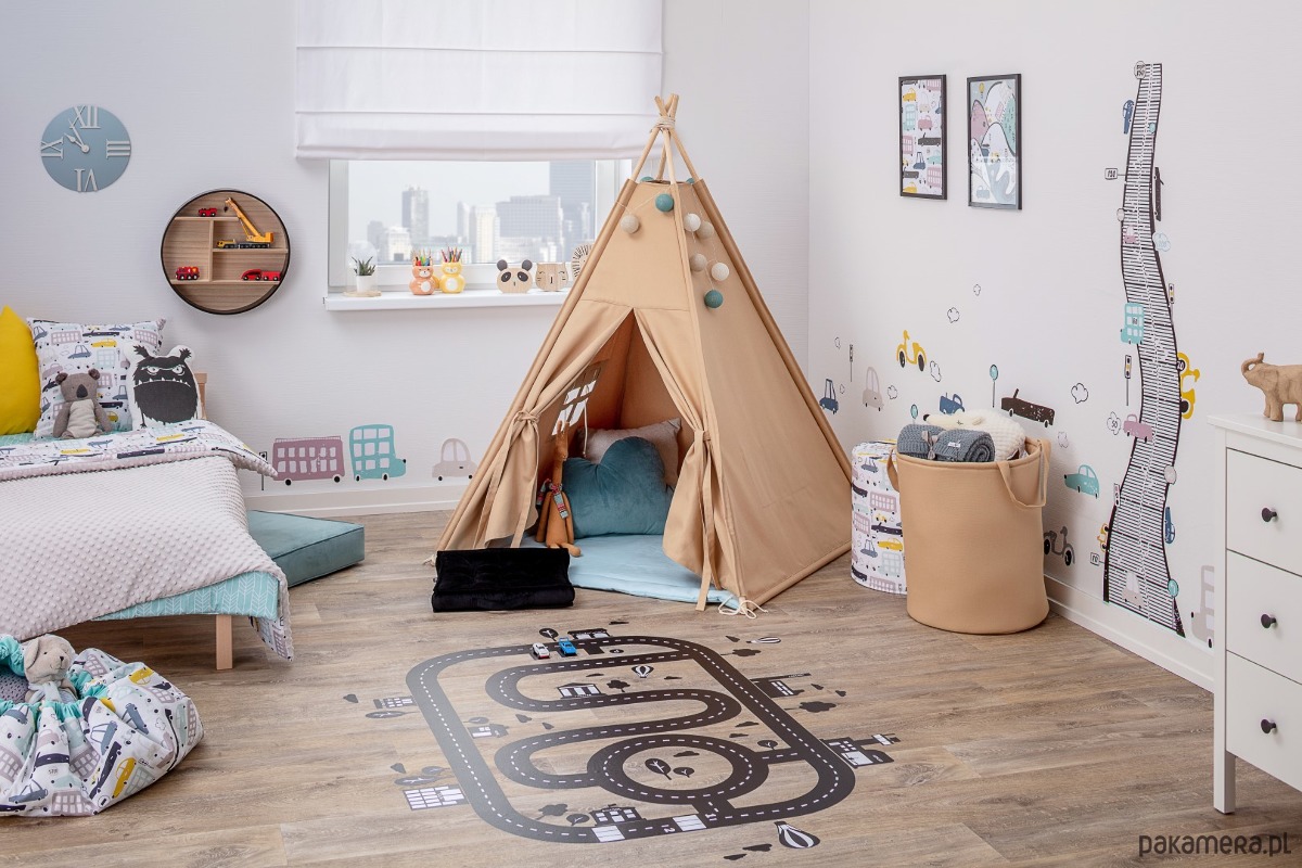 Namiot tipi najlepiej prezentuje się wyposażony w miękką matę i kolorowe poduchy, które znajdziesz w naszej ofercie.