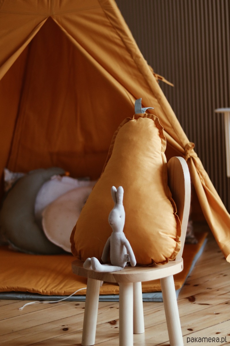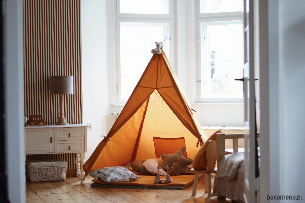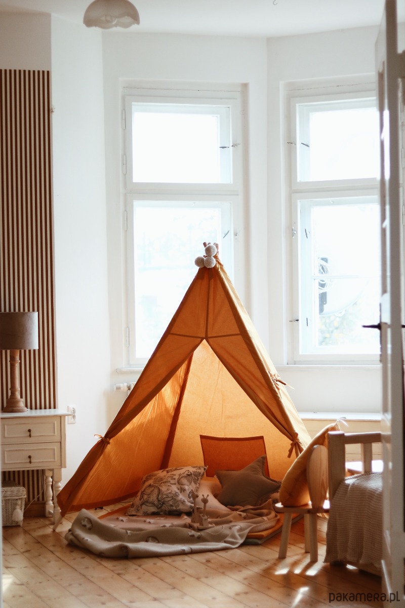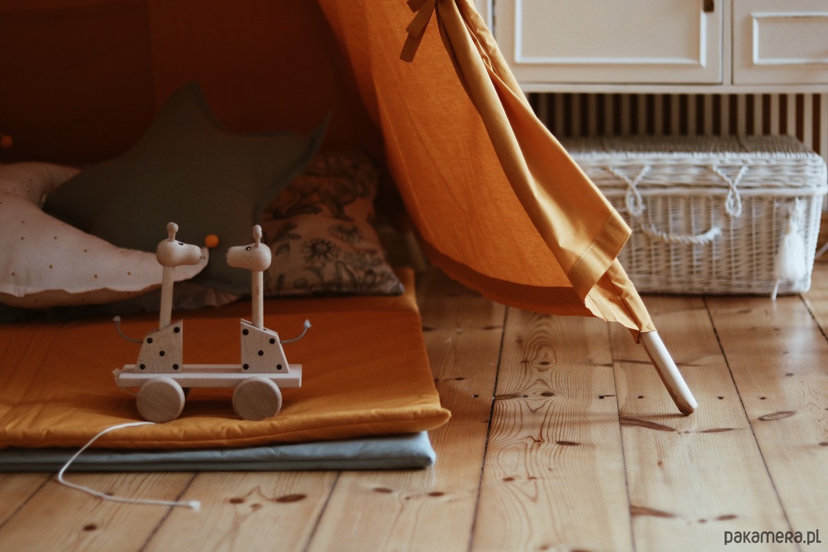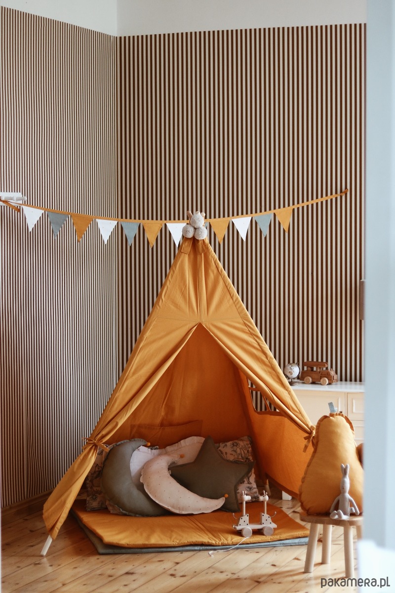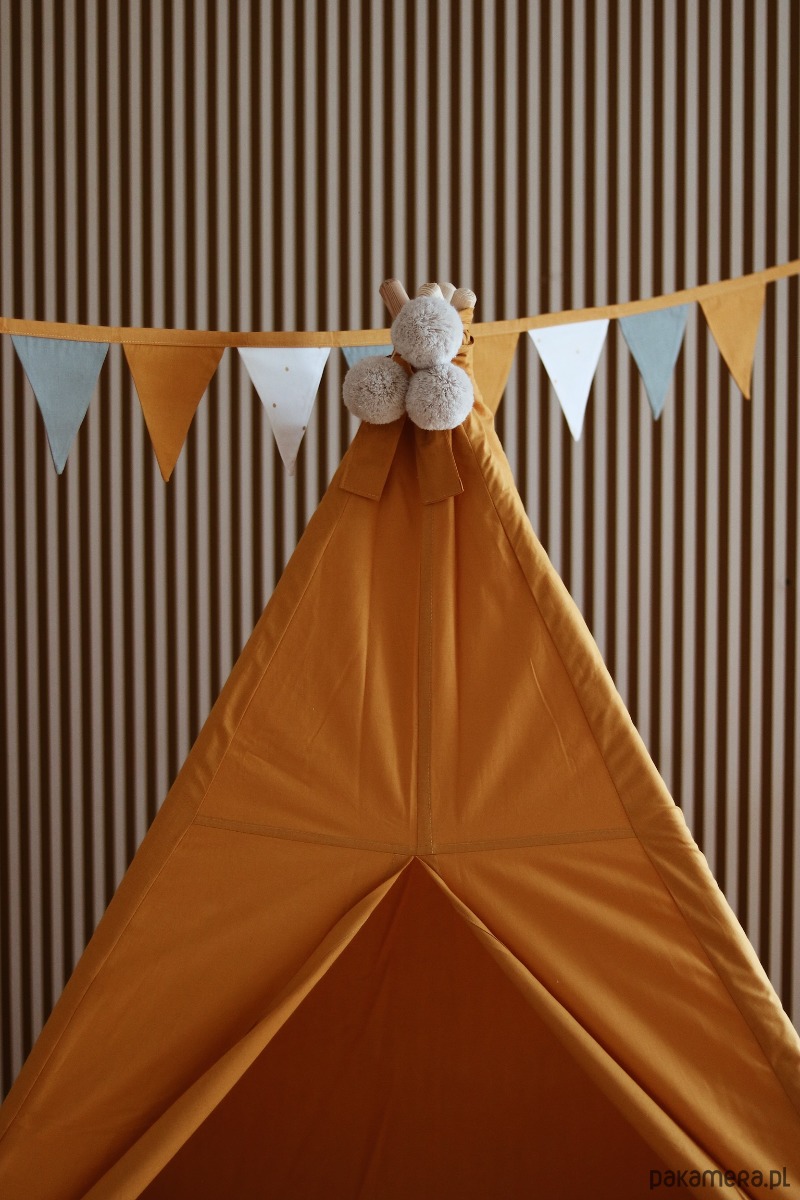 Tipi w kolorze MUSZTARDOWYM to klasyczny namiot, pasuje do każdego wnętrza. Jest odpowiedni dla chłopca i dziewczynki, tipi ten jest piękną ozdobą pokoju dziecięcego. Wigwam posiada miękką matę do zabawy o wymiarach 100x100cm. Tipi wykonane jest z dbałością o szczegóły. Każdy egzemplarz jest unikalny i wykonany ręcznie.