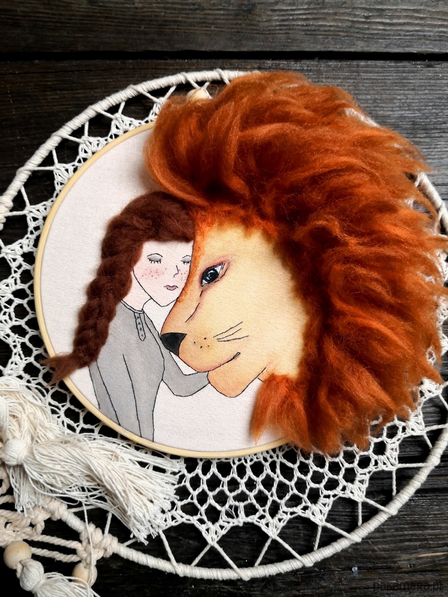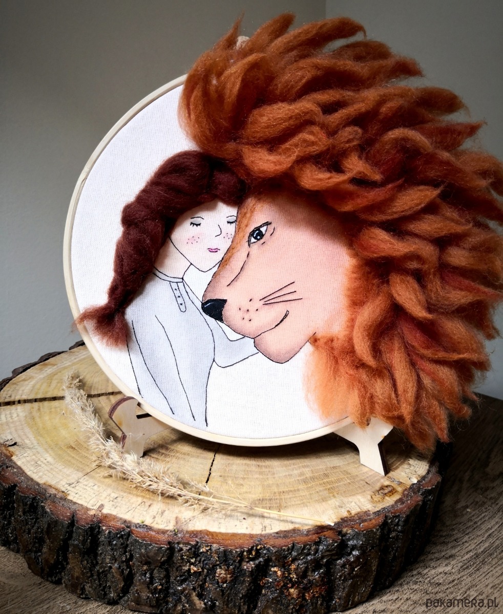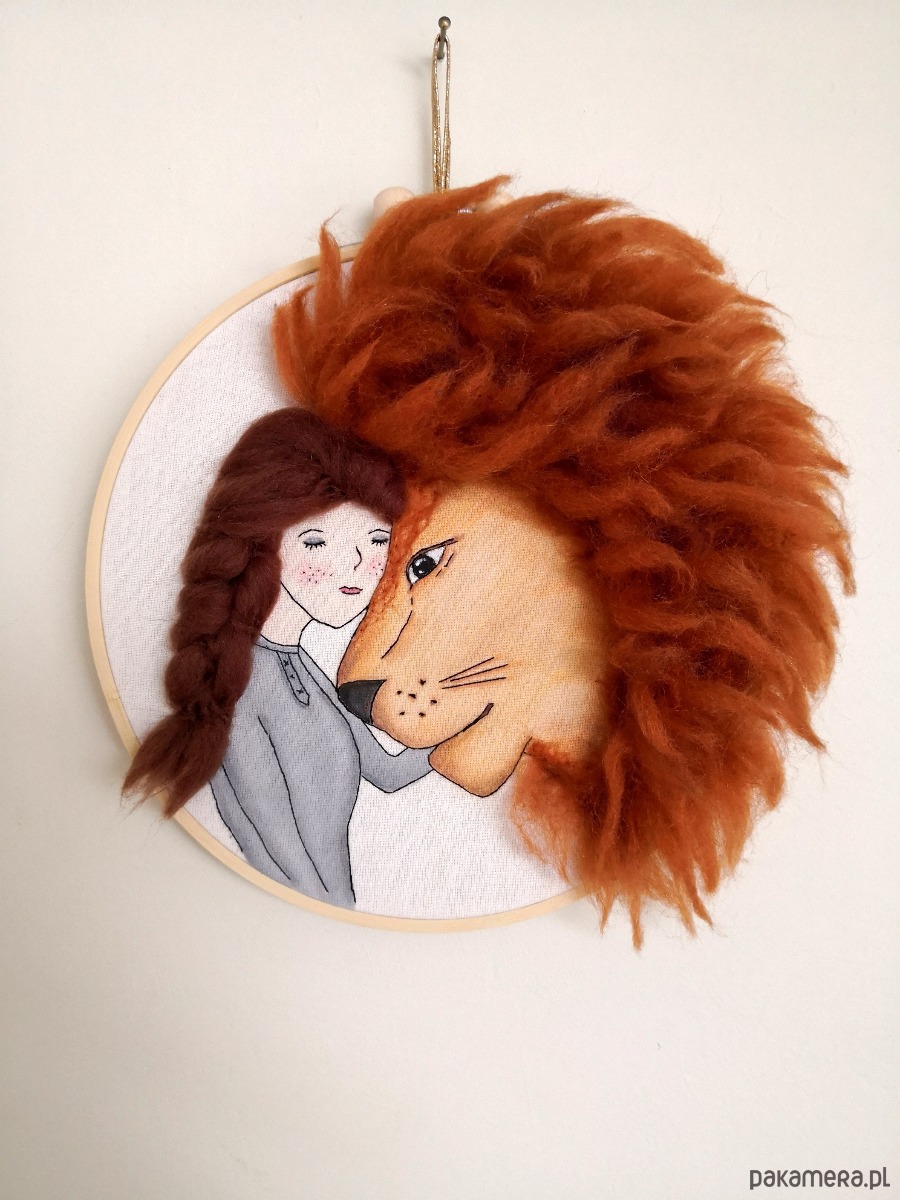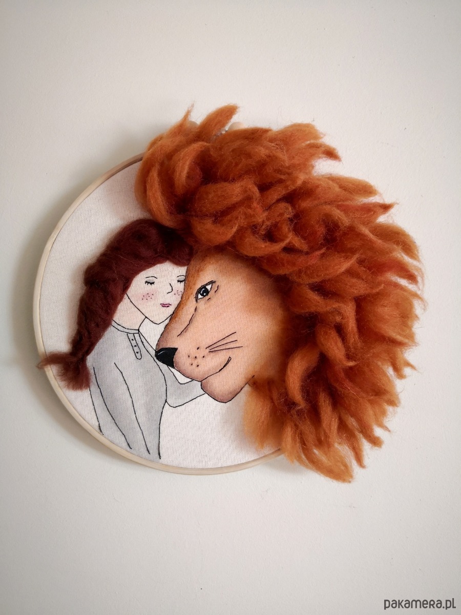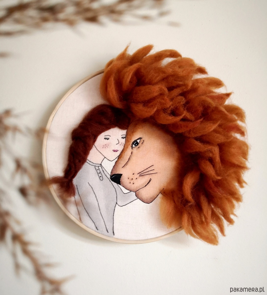 Dziewczynka i lew - magiczna opowieść o przyjaźni między człowiekiem i majestatycznym zwierzęciem zamknięta w tamborku. To dekoracja, która z pewnością będzie przykuwać uwagę i zarazem pięknie dopełni wnętrze pokoju dziecięcego.