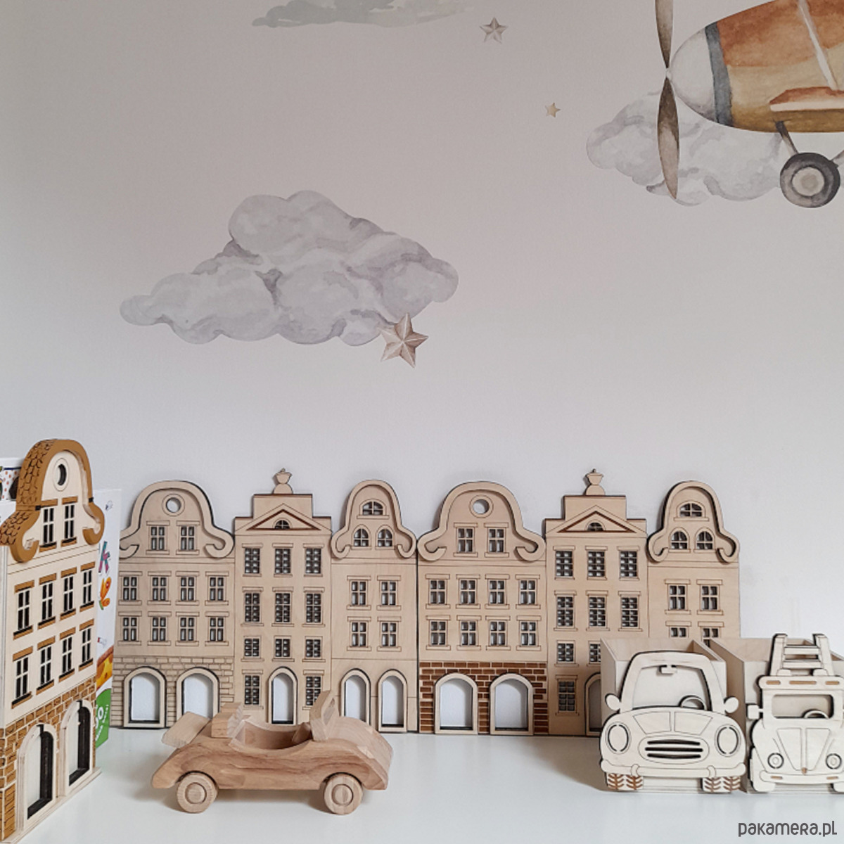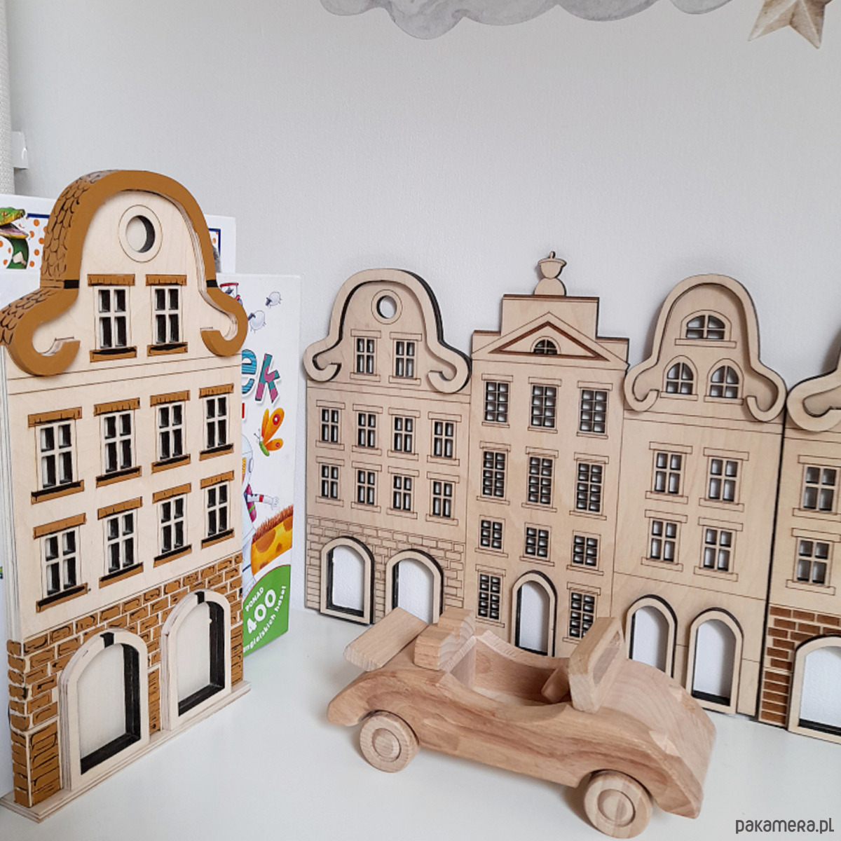 Drewniane kamieniczki można zamówić w zestawie lub pojedynczo.