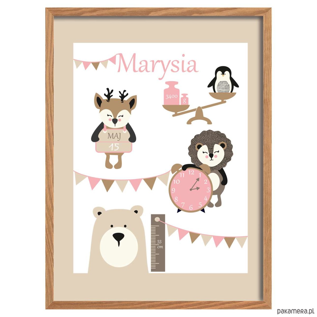Metryczka dla dziecka to wspaniała pamiątka uwieczniająca przyjście na świat Twojej pociechy. Może być również pięknym prezentem dla świeżo upieczonych rodziców. Ta z serii "Grow Up" jest utrzymana w stylistyce retro i oprawiona w naturalną, drewnianą ramkę.