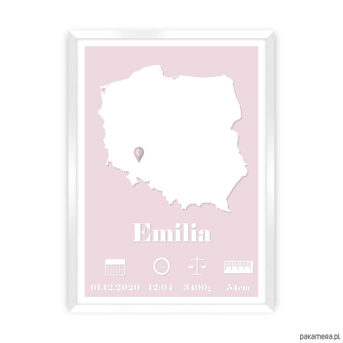 Nasz projektant - artysta zaprojektował ilustrację, dzięki której oznaczysz miejsce narodzin swojej pociechy. Grafika wydrukowana jest na wysokiej jakości, grubym papierze i oprawiona w białą ramkę.