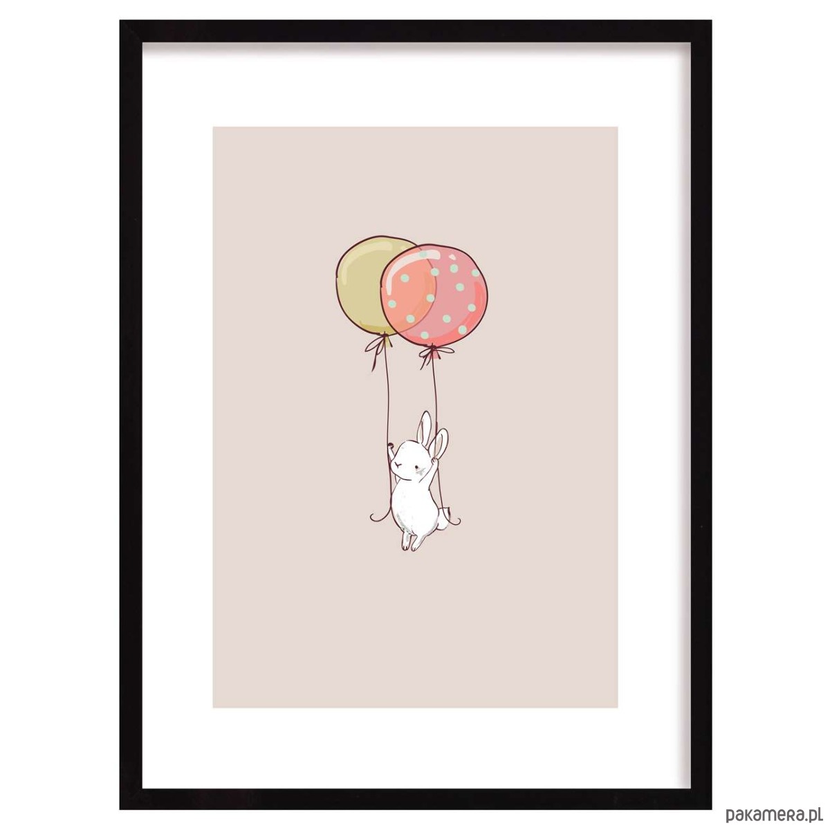 Wyróżnia się uroczym wzornictwem, które osłodzi wnętrze pokoju każdej dziewczynki. Unoszący się na balonie króliczek - rozbudzi wyobraźnię i zabierze Twoją pociechę do krainy marzeń. Ramka w kolorze czarnym.