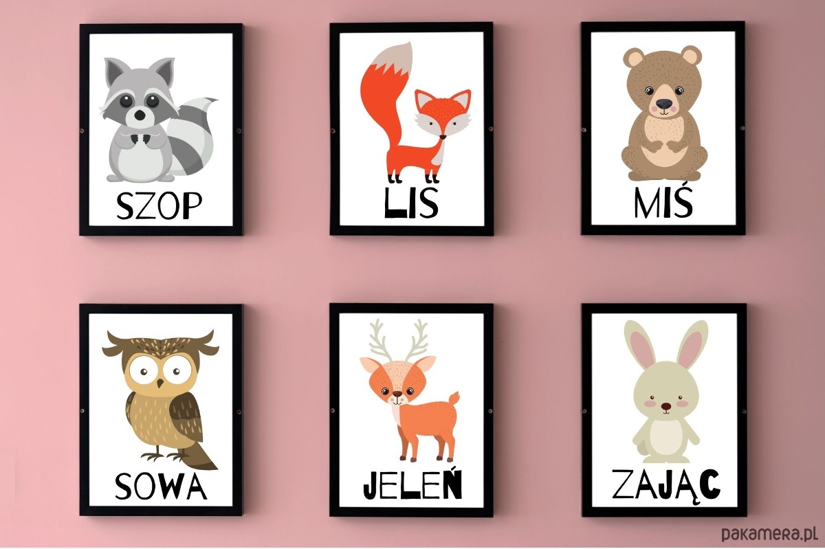 PLAKATY W RAMKACH DLA DZIECKA zwierzątka leśne