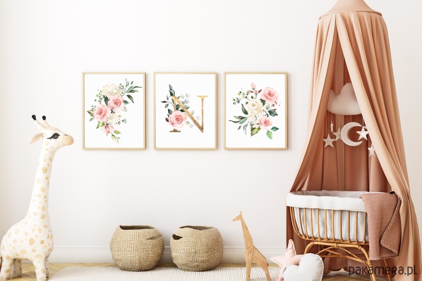Przedstawiamy Państwu zestaw trzech plakatów do dziecięcego pokoju - dwie prace z kwiatami oraz jeden plakat z dowolną literą. Piękne żywe kolory. Druk cyfrowy najwyższej jakości. Pięknie prezentują się na ścianie w każdym kolorze. Drukowane bezwonnymi tuszami na bazie wody.