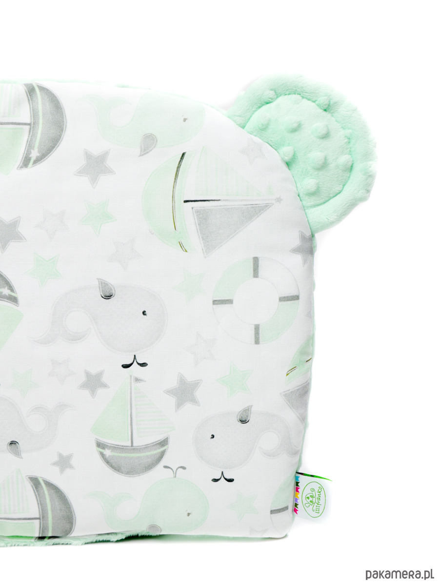 Urocza poduszeczka z uszkami, doskonale sprawdzi się w łóżeczku czy wózku, a także w przedszkolu. Z jednej strony satynowana bawełna w piękne wzory, z drugiej puszyste minky, całość delikatnie wypełniona antyalergiczną włókniną silikonową. Można swobodnie skompletować ją z kocykiem w tym samym wzorze. Pracujemy nad tym, aby delikatność tkanin i fantazyjność wzorów przenosiła w świat dziecięcych marzeń. Nasze produkty to 100% najlepszych materiałów, 100% polskich pomysłów i 100% polskiego wykonania. Szyjemy produkty ze wzmożoną starannością i dbałością o detale, tak aby Wasze dzieci miały tylko kolorowe sny.