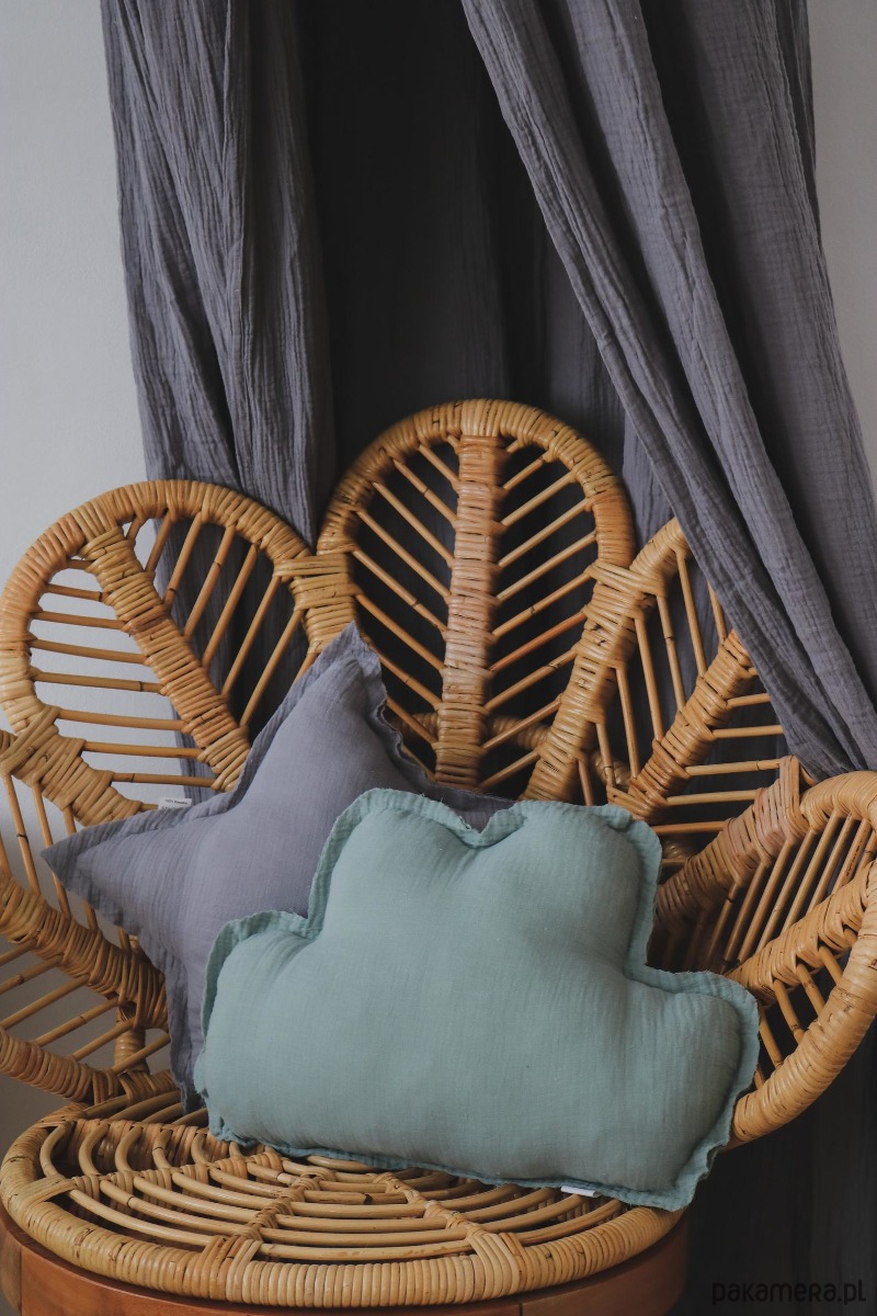 Miękka poduszka będzie niezbędnym elementem drzemki, zabaw poduszkowych i piękną dekoracją pokoju. Możliwość skompletowania kilku poduszek. Możliwość stworzenia pięknego teepee z poduszkami oraz koszem.