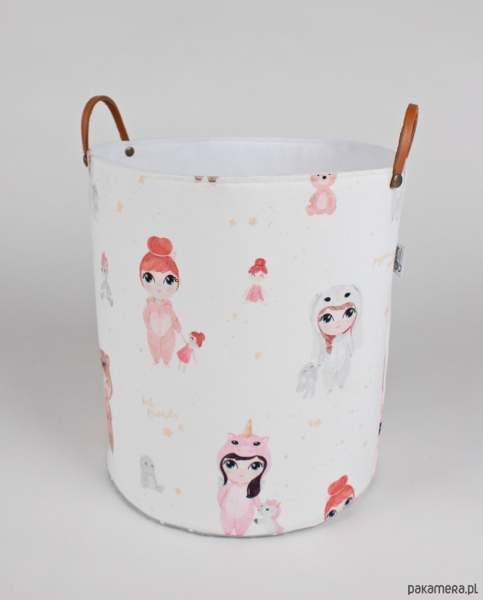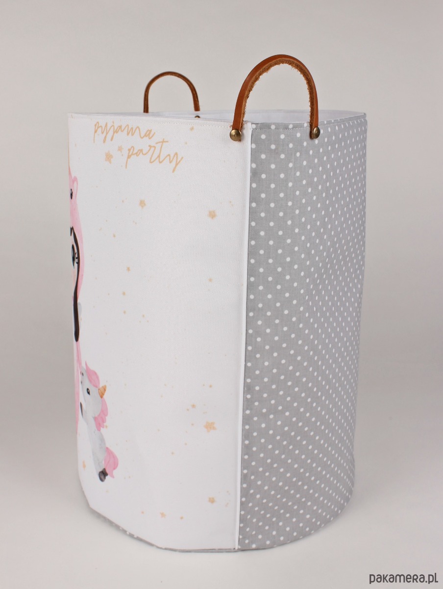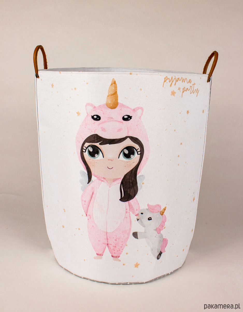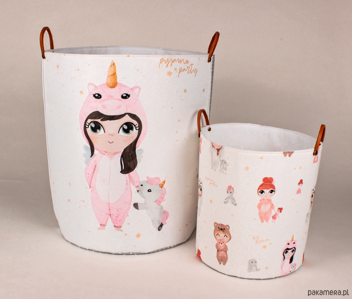Pojemnik - dziewczynka z jednorożcem. Co może dać dzieciom? Zorganizowaną i spokojną przestrzeń wokół nich, uporządkowanie swoich małych i większych skarbów, styczność z naturalnymi tkaninami, delikatnymi wzorami i kolorami.