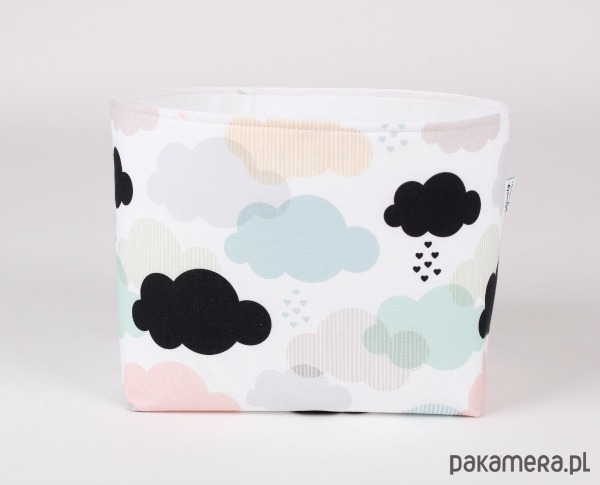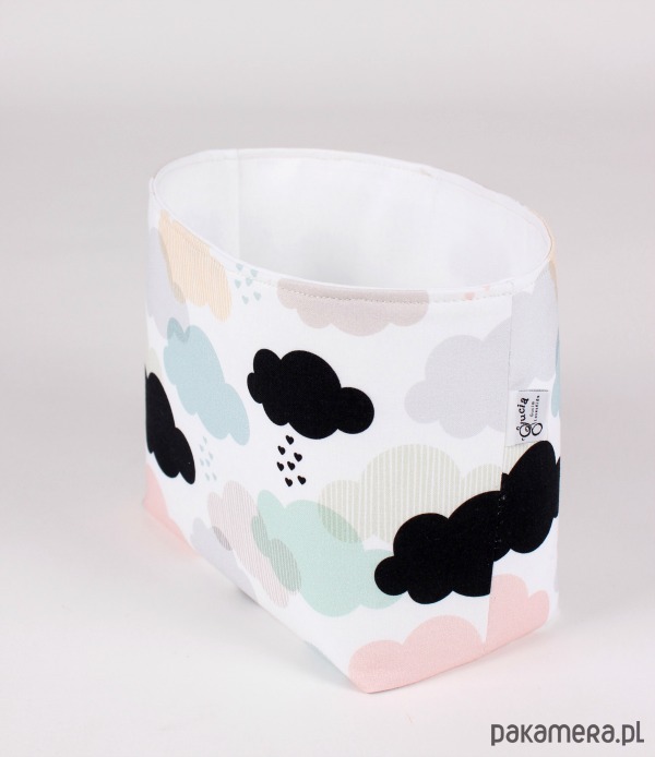 Pojemnik w chmury. Co może dać dzieciom? Zorganizowaną i spokojną przestrzeń wokół nich, uporządkowanie swoich małych i większych skarbów, styczność z naturalnymi tkaninami, delikatnymi wzorami i kolorami.