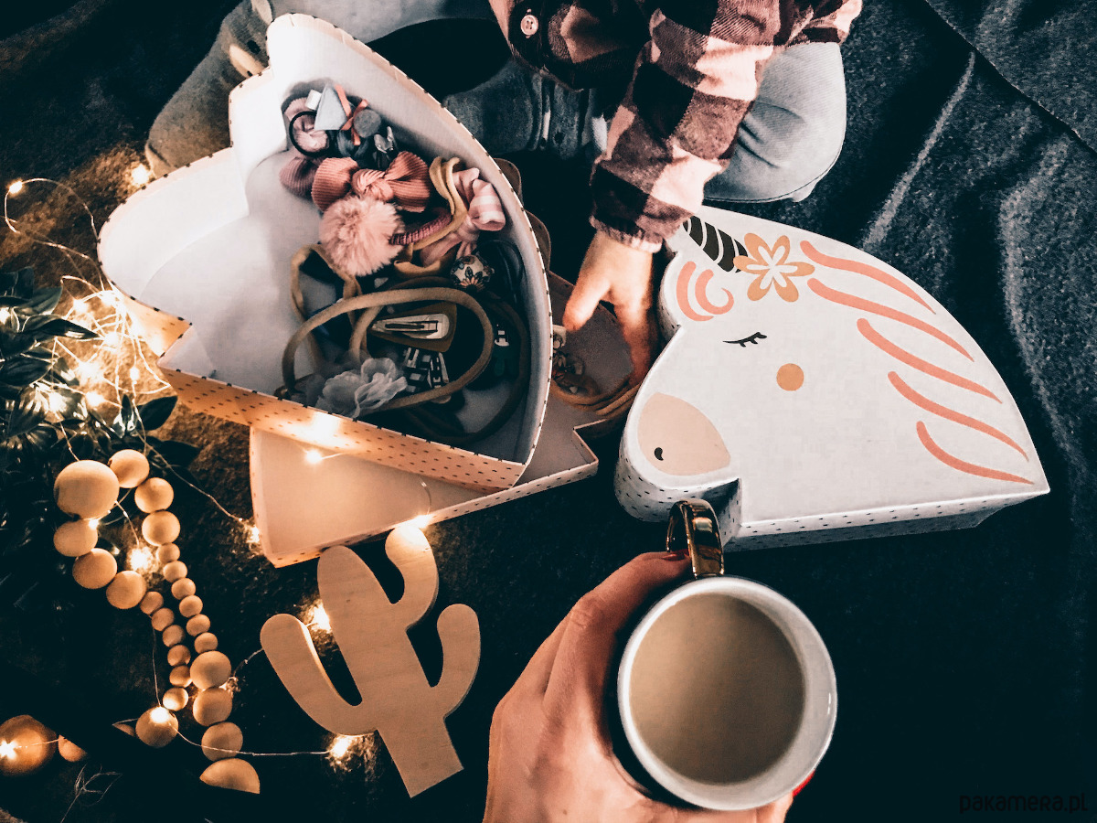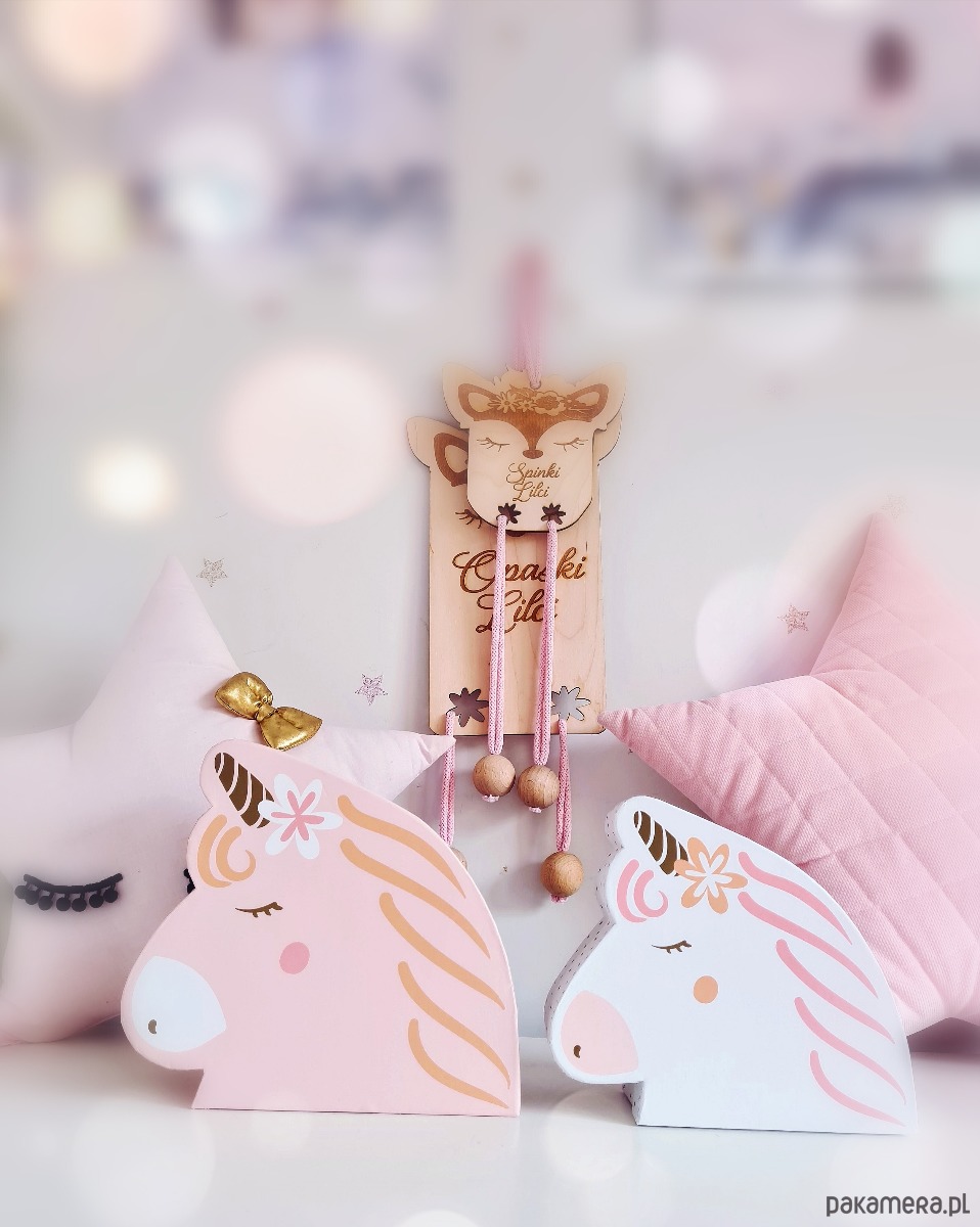 Kartonowe pudełka jednorożce - zestaw dwóch sztuk , będą idealnym rozwiązaniem na przechowywanie gumek, spinek i innych drobiazgów w pokoju dziewczynek.