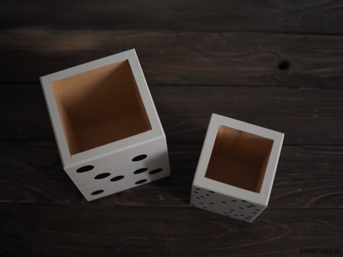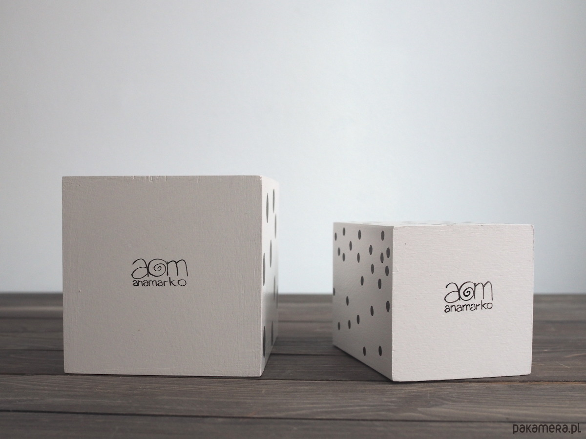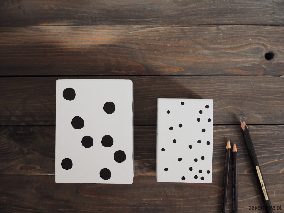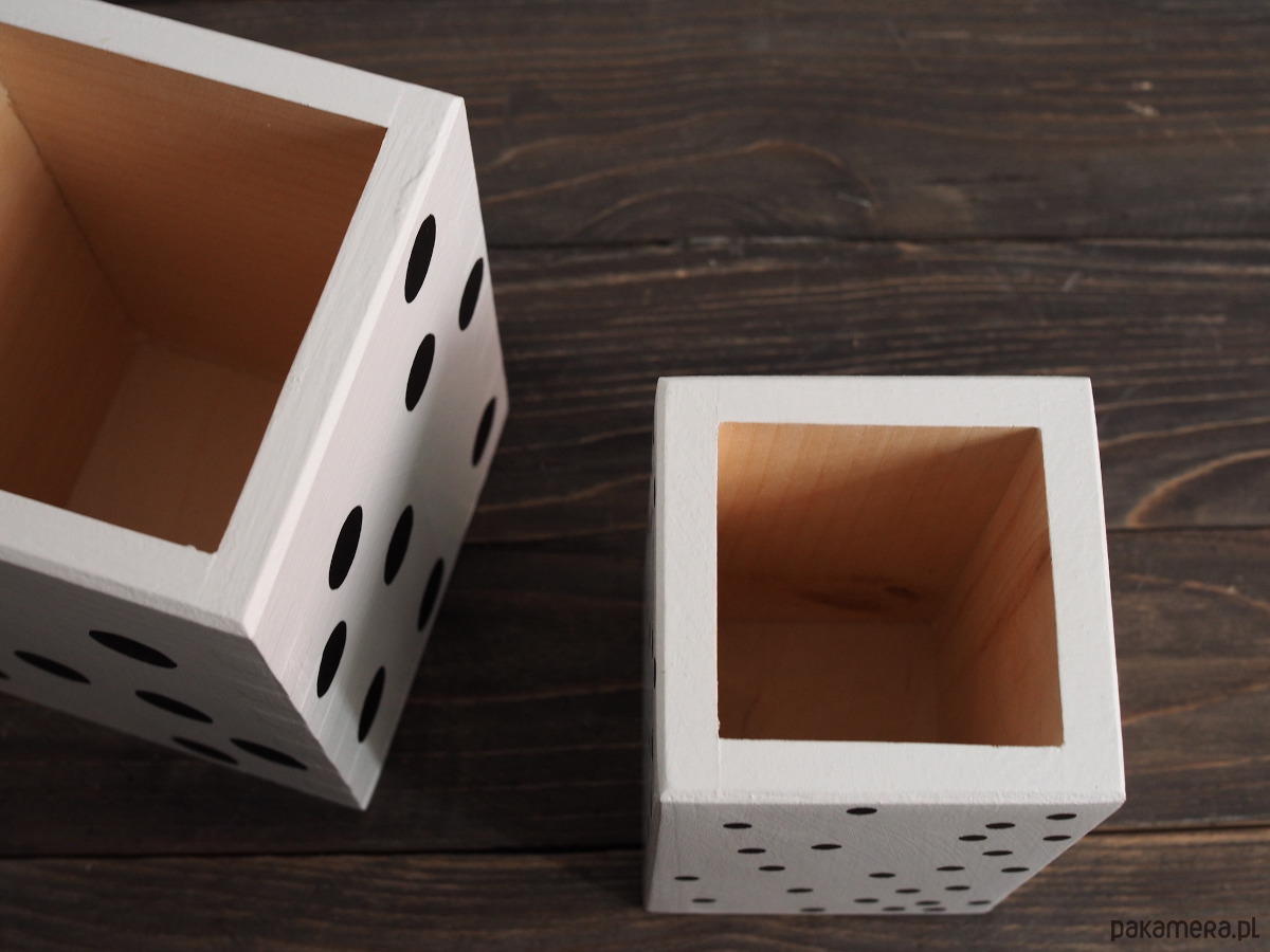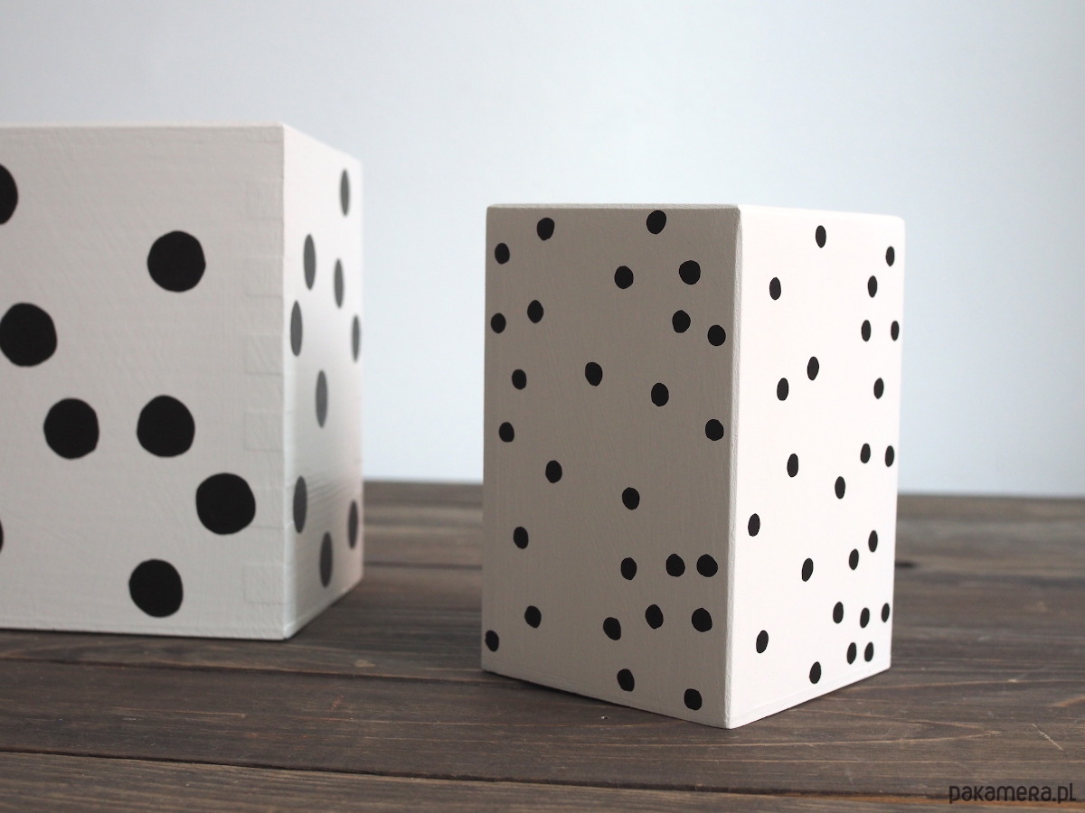 Pojemnik na kredki w kropeczki, wykonane z drewna, pomalowane farbami akrylowymi, w dwóch rozmiarach do wyboru.
