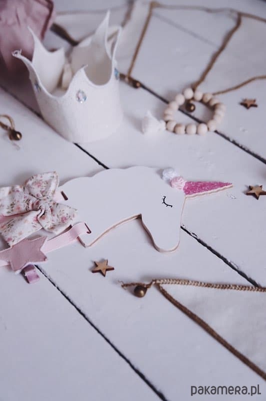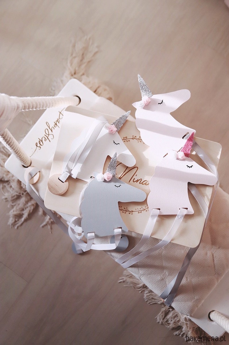 Drewniany organizer na spinki w kształcie Jednorożca pozwoli uporządkować spinki w pokoju Twojej Księżniczki. Nasz organizer to również piękna dekoracja. Wykonany jest z ekologicznych materiałów z drewna liściastego. Organizer posiada charakterystyczny róg, który ozdobiony jest brokatem. Niepowtarzalnego uroku dodają jednorożcowi również różyczki.