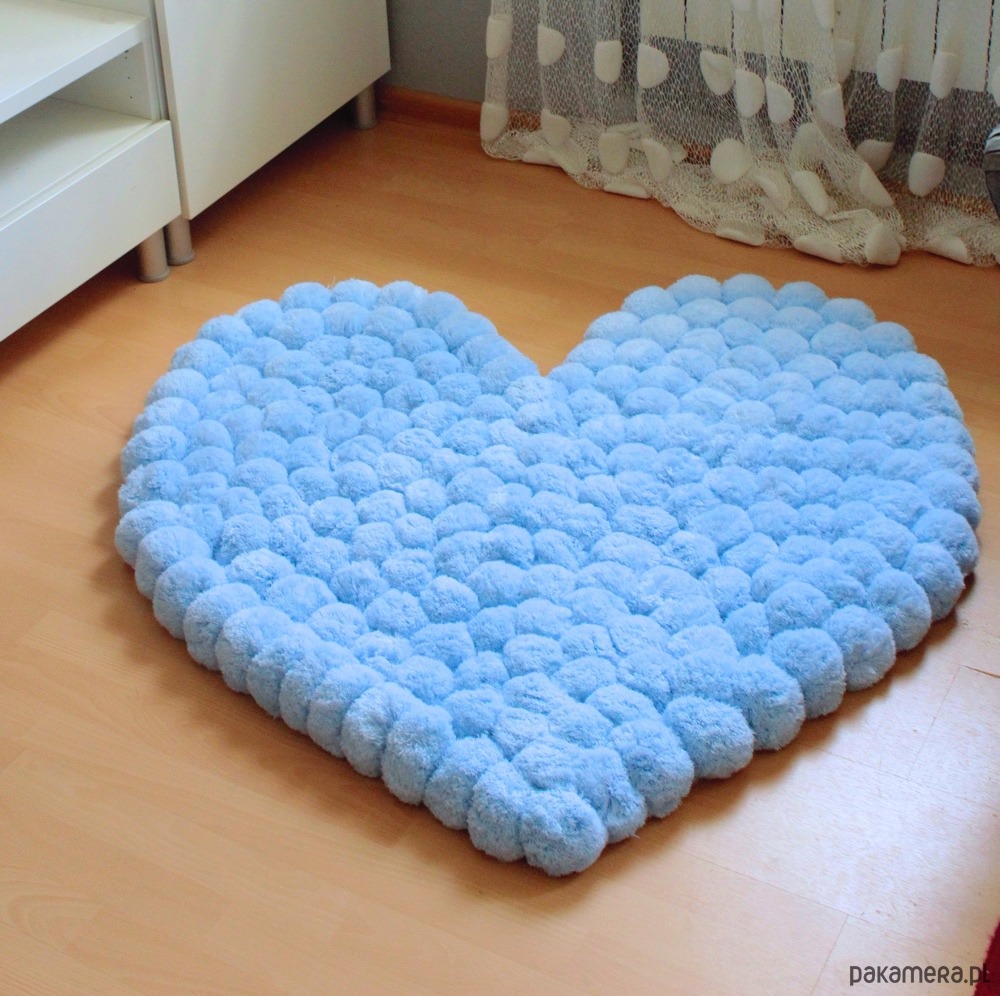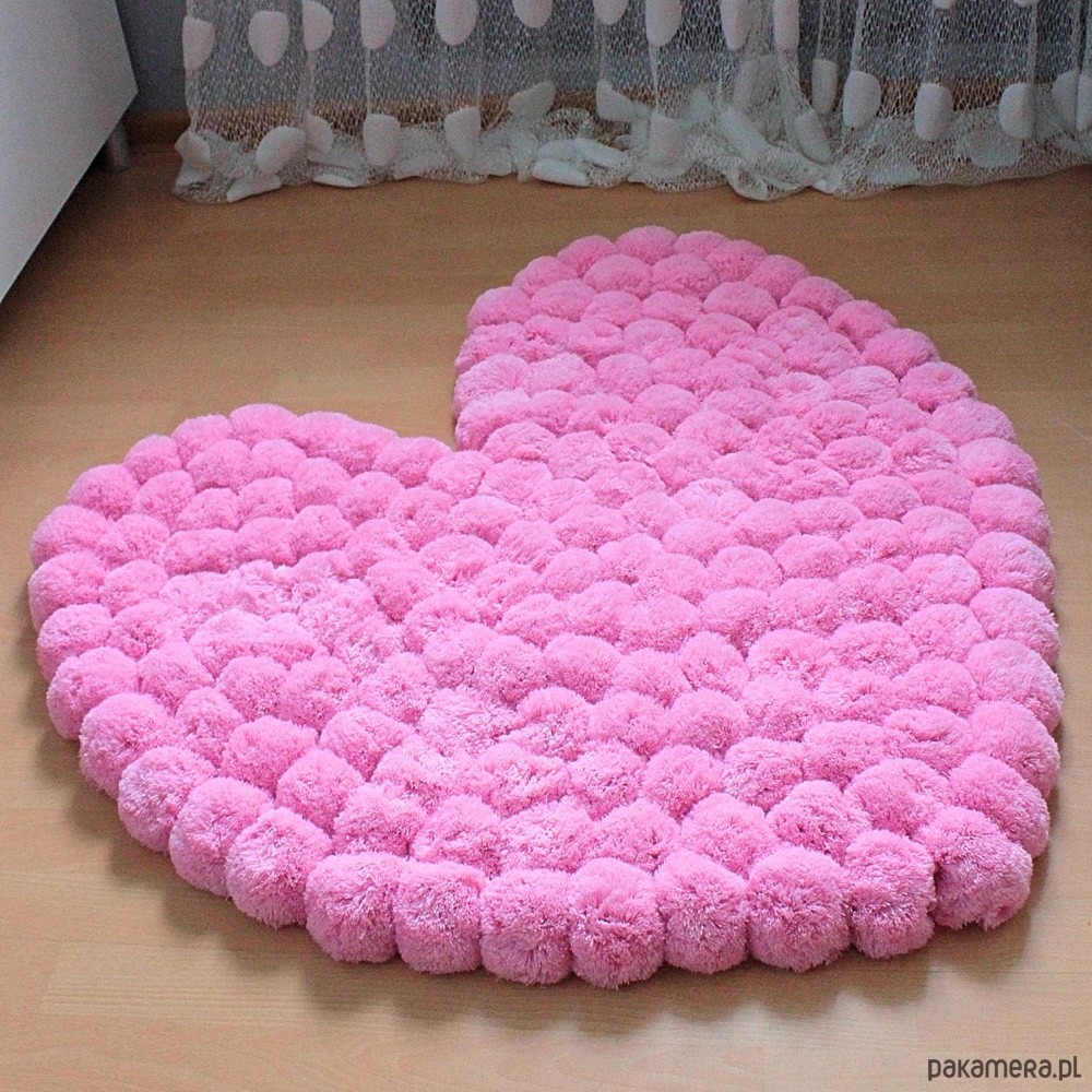 Dywan z pomponów w kształcie serca o średnicy 146 cm