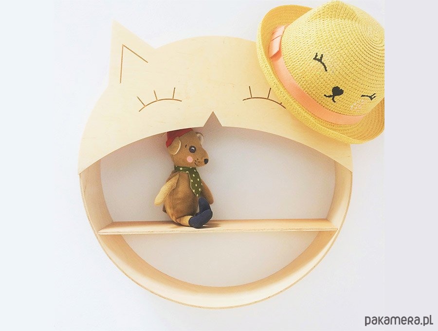 Drewniana półka kotki o średnicy 39 cm i głębokości 8 cm.