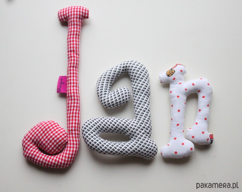 literki imienne na zamówienie, miękkie, miłe, zrobione z bawełny i wypełniacza poduszkowego, wysokość od 11 do 17cm literki zawieszone są na żyłce