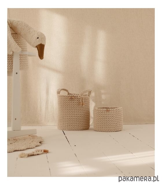 Doskonale nada się do pokoju dziecięcego jako organizer na wyprawkę lub zabawki malucha. Starannie wykończony i niezwykle mięsisty. Gruby splot zapobiega odkształcaniu się koszyka.