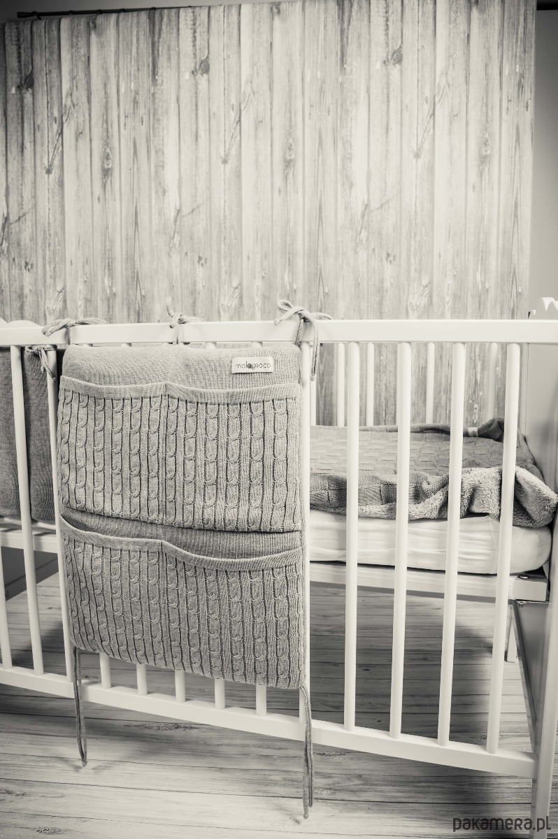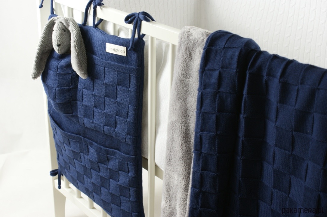 Organizer wykonany z dzianiny bawełniano -akrylowej o eleganckim, wyrazistym splocie. Będzie nie tylko praktycznym elementem wyposażenia pokoiku dziecięcego, ale także jego piękną ozdobą. Organizer stanowi uzupełnienie pozostałych elementów kolekcji.