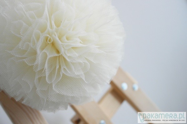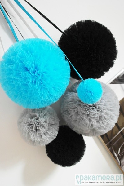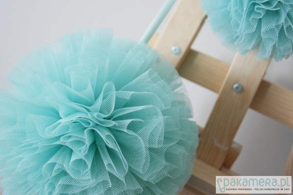 Czarujące, delikatne, cukierkowe, designerskie. Po prostu Pom.Pom! Idealnie sprawdzają się jako: element wystroju wnętrz, np. w stylu francuskim czy skandynawskim, element wystroju pokoi dziecięcych, jako rekwizyty do sesji fotograficznych, jako temat przewodni wesela, komunii, ogrodowego przyjęcia czy kinderbalu. Pompony wykonane są ze sztywnego tiulu najwyższej jakości, do każdego dołączona jest satynowa tasiemka do mocowania o długości 100 cm. Po dokonaniu zakupu proszę o podanie koloru: - biały - ecrue - złoty - żółty - morelowy - jasny róż - brudny róż - róż - koralowy róż - neonowy róż - lila - jasny fiolet - ciemny fiolet - błękit - niebieski - kobalt - granat - jasna limonka - oliwka - szary - czarny.