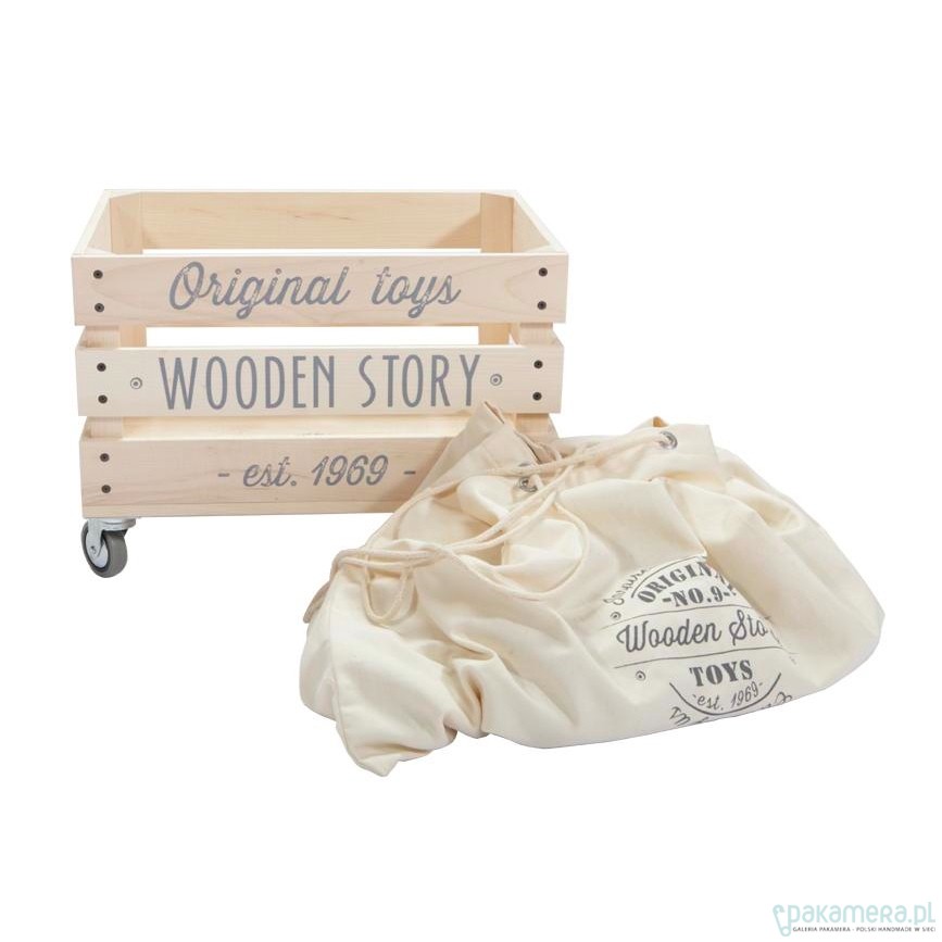 Drewniana skrzynia, która odmieni każdy pokój. Ukryjesz w niej swoje zabawki i największe skarby! Sprzątanie już nie będzie nudne i trudne. Raz, dwa, trzy i biegniesz dalej. Uważaj na rodziców... skrzynia jest idealna dla ich skarbów, winylowych płyt, książek, kłębków włóczki lub czasopism, które lubią uciekać po całym domu. Skrzynia z surowego, litego drewna, na kółkach. Niezbędna w każdym domu, nie tylko w pokoju dziecięcym. Worek z grubej bawełny możesz dokupić jako dodatkowy, idealny element skrzyni. Wyselekcjonowane drewno od certyfikowanych dostawców FSC. Wolne od wszelkich szkodliwych substancji. Produkt ekologiczny. Made in the Beskidy Mountains.